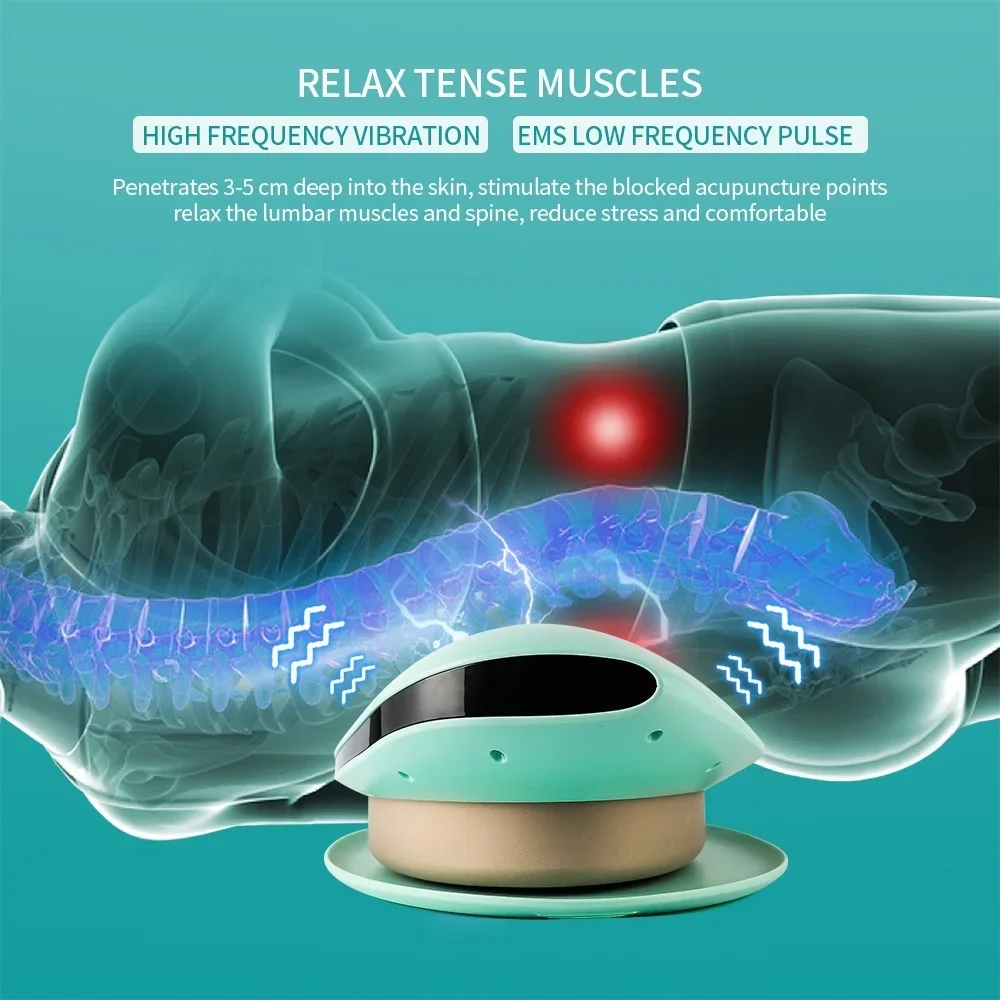 10 levels of pulse intensity can be adjusted, through low-frequency pulse technology, It can penetrate 3-5 cm deep into the skin, open up pain points and meridians, Act on the waist to relieve pain.