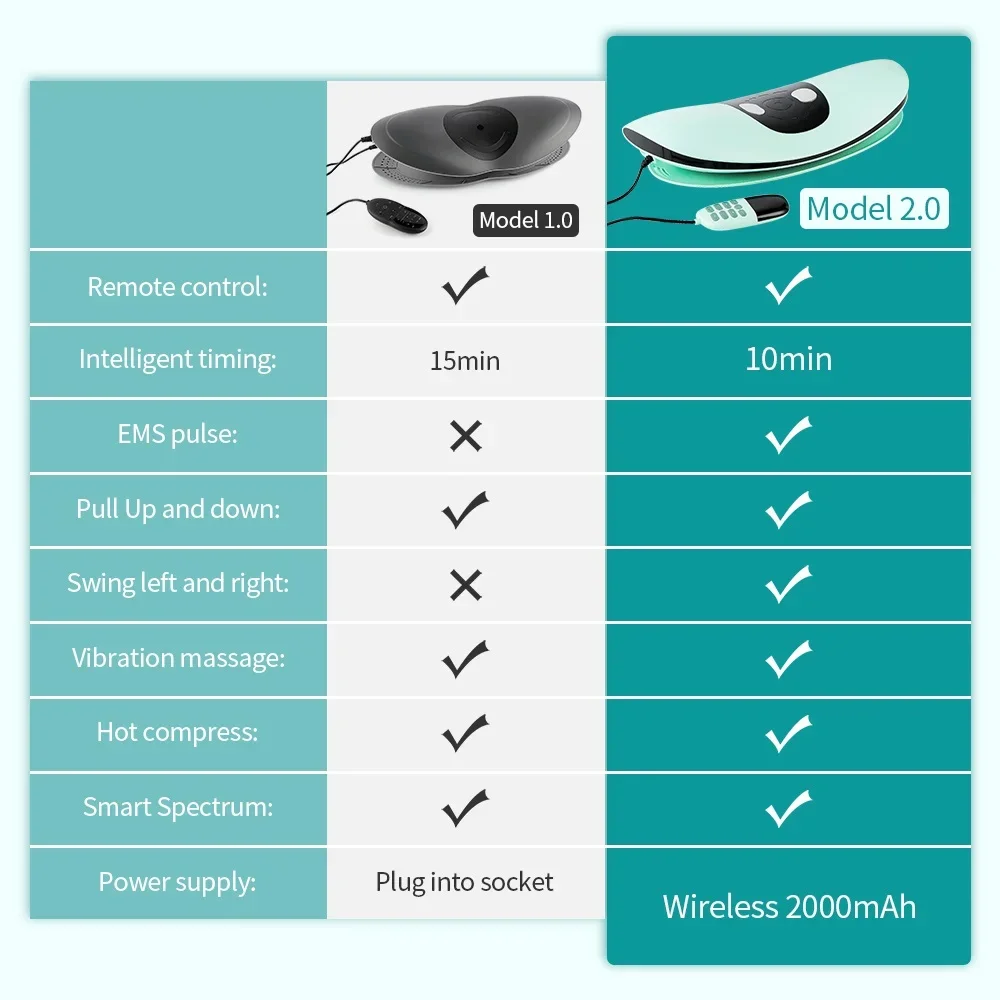 Multi-frequency vibration massage, using different frequencies of vibration.Activates the muscles and releases the pressure on the lower back.