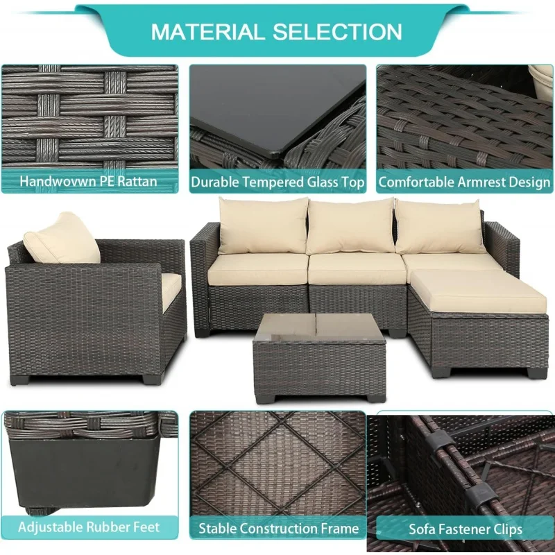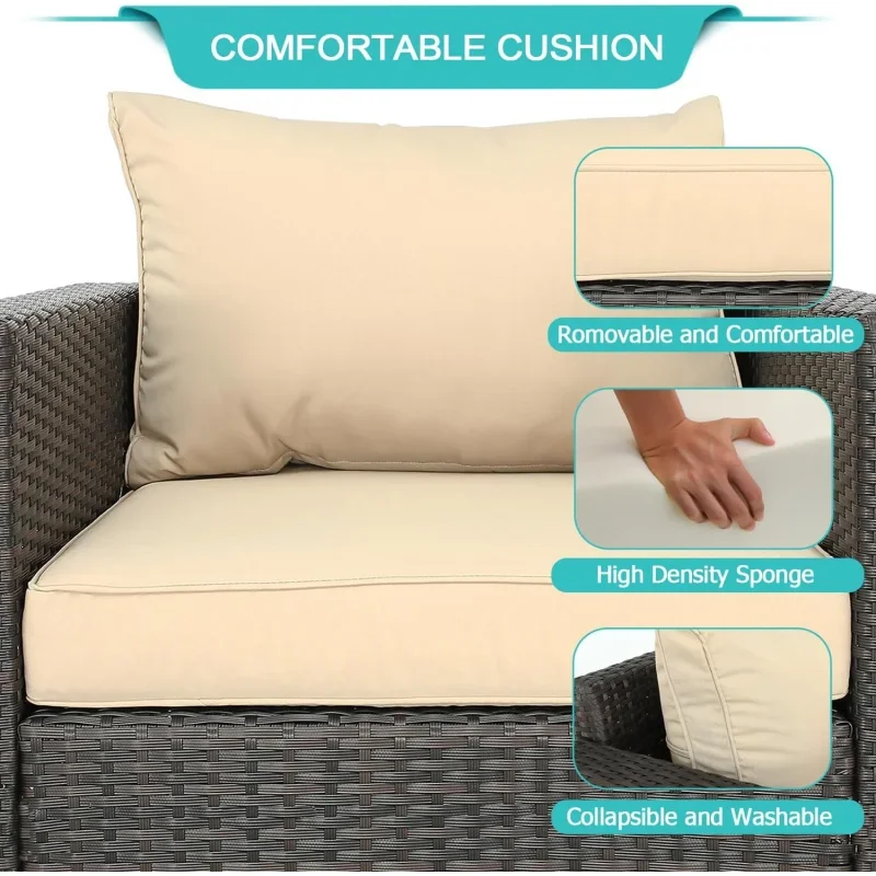 HAND-WOVEN PE RATTANpatio sectional set is made of durable PE rattan wicker and high quality steel frame |