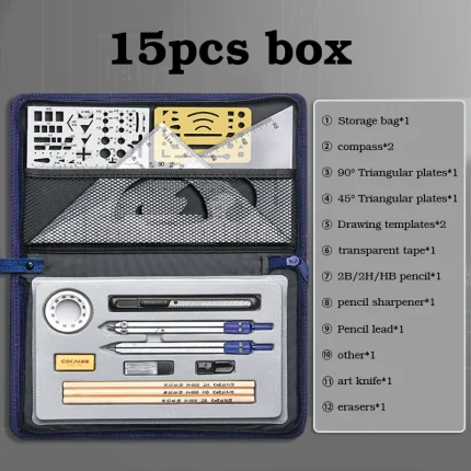 15 In1 Compass Ruler Math Geometry Plate Stationery Set Students Professional Civil Mechanical Engineering Drawing Accessori
