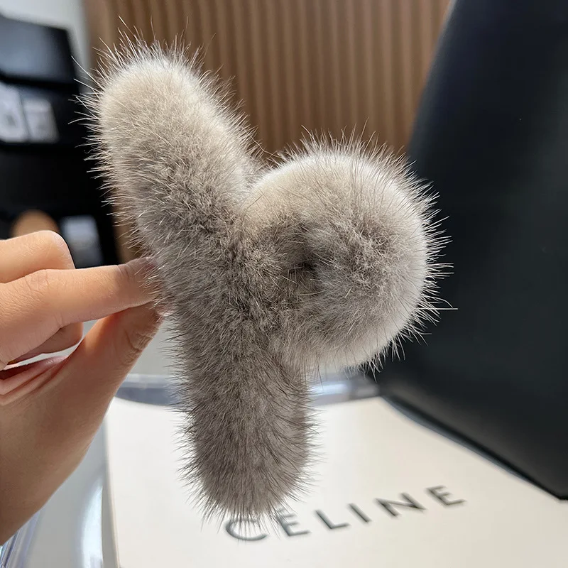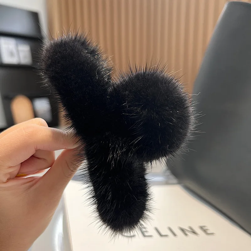 Home Store Beauty Products Hair accessories Real Mink Fur Barrettes Winter Fluffy Hair Claw Elegant Acrylic Hairpins Clip Crab Headwear for Women Girls Hair Accessories