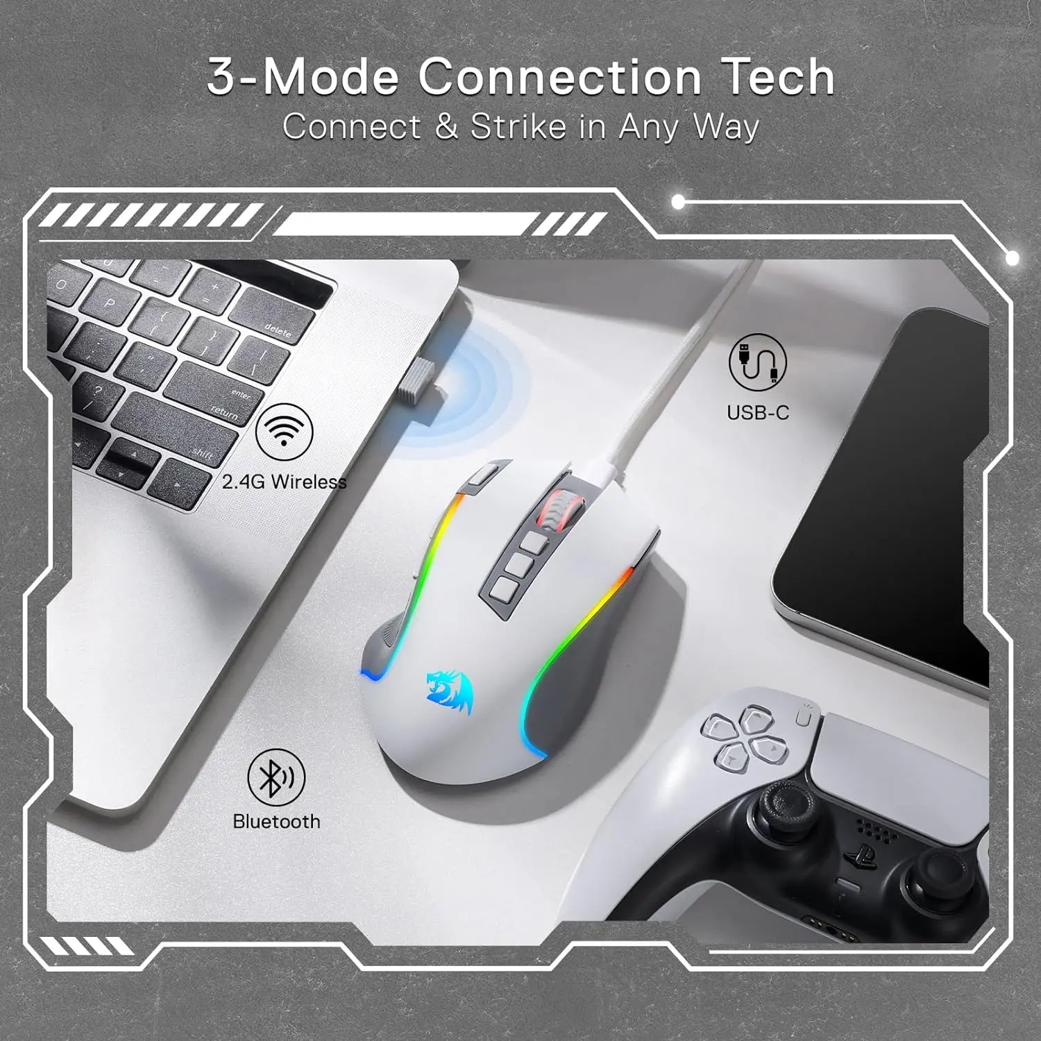 BT/2.4Ghz/Wired 3 ways to get connected for a next-level experience. Assures your excellent using experience in all aspects.