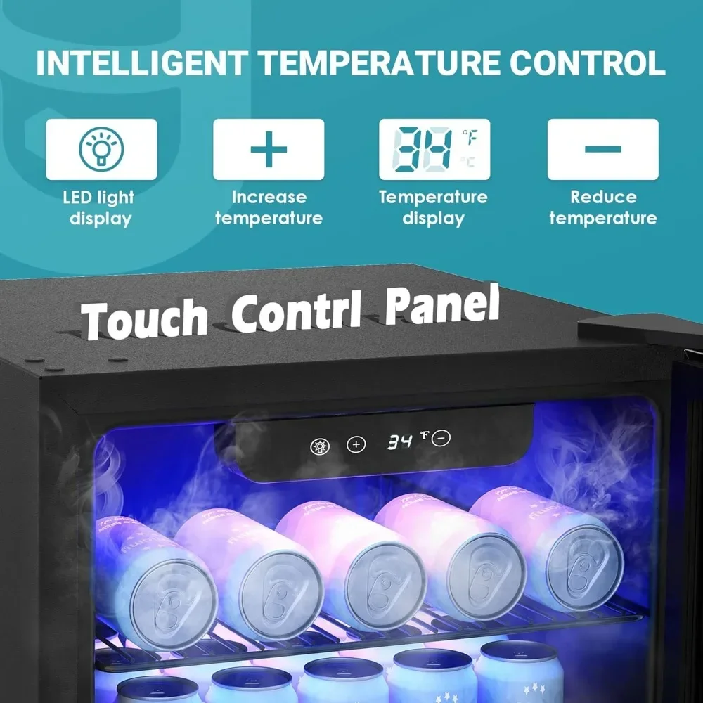 - QUIET + ADVANCED COOLING SYSTEM – With a powerful compressor and internal air-cooled system, mini fridge creates an evenly cooled space by ensuring that air flows throughout the entire beverage center.In addition, ultra quiet cooler of beverage cooling machine doesn’t affect your daily rest or working. With our cooler, you won’t just enjoy cold drinks, you’ll have a quiet environment too.