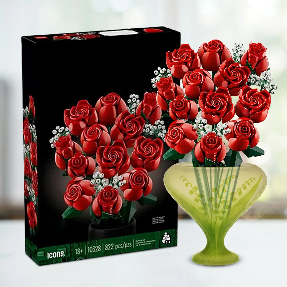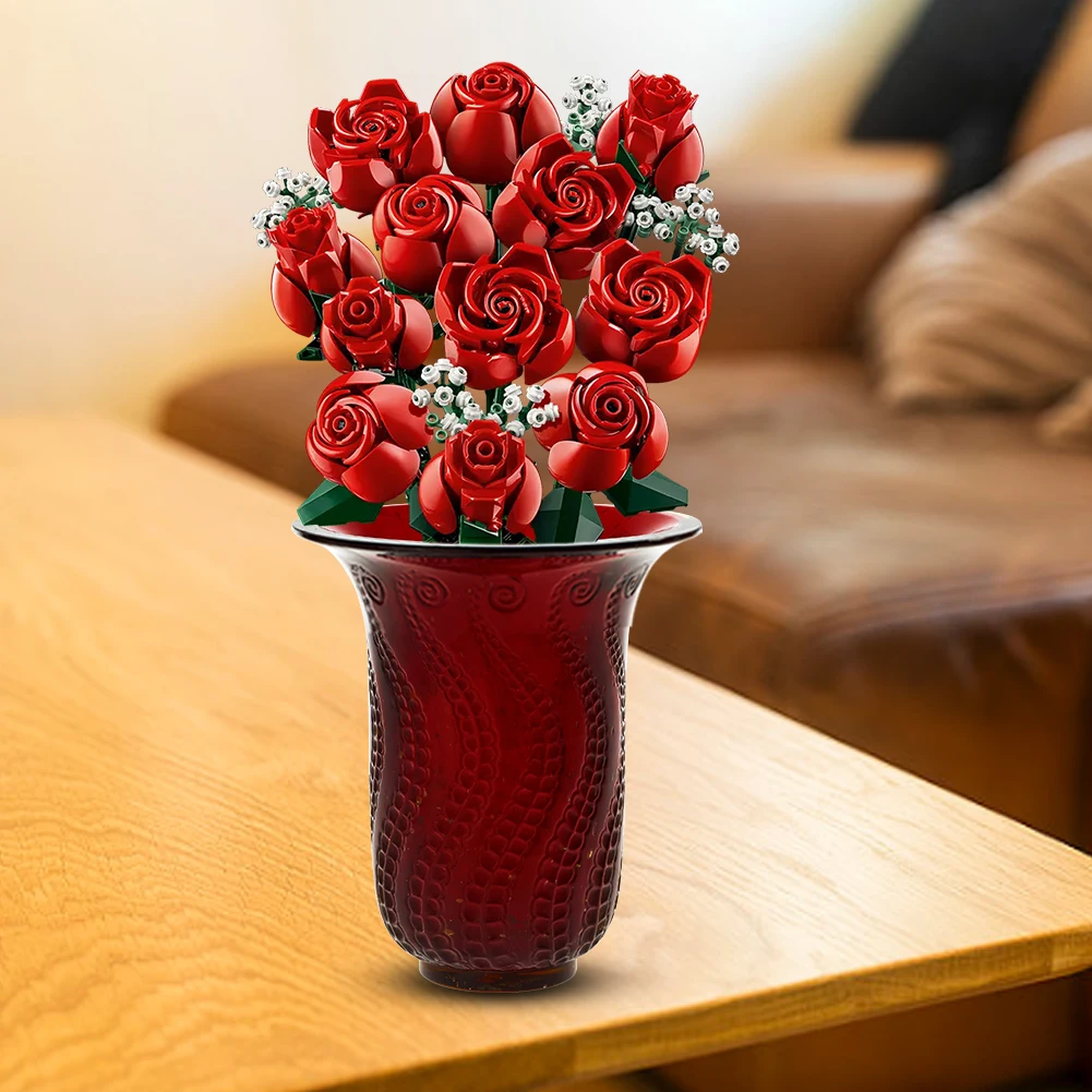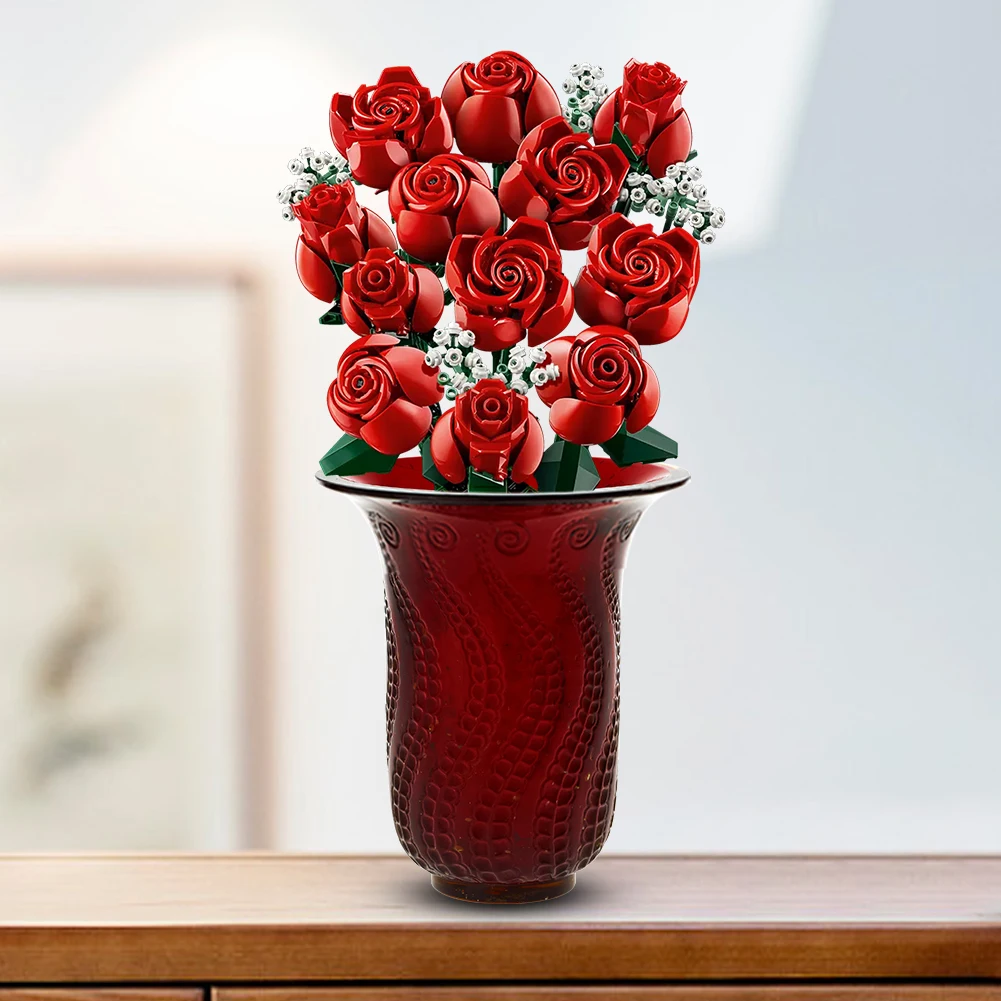 1 x Romantic Red Rose Flower Bouquet Building Blocks