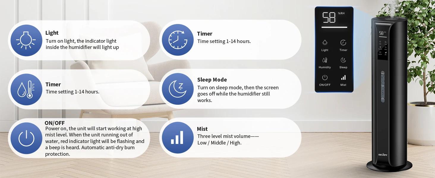 Home Store Household Essentials SEJOY 9L/2.4Gal Cool Mist Top Fill Ultrasonic Humidifier Perfume Essential Oil Diffuser Large Room Remote Control personal car