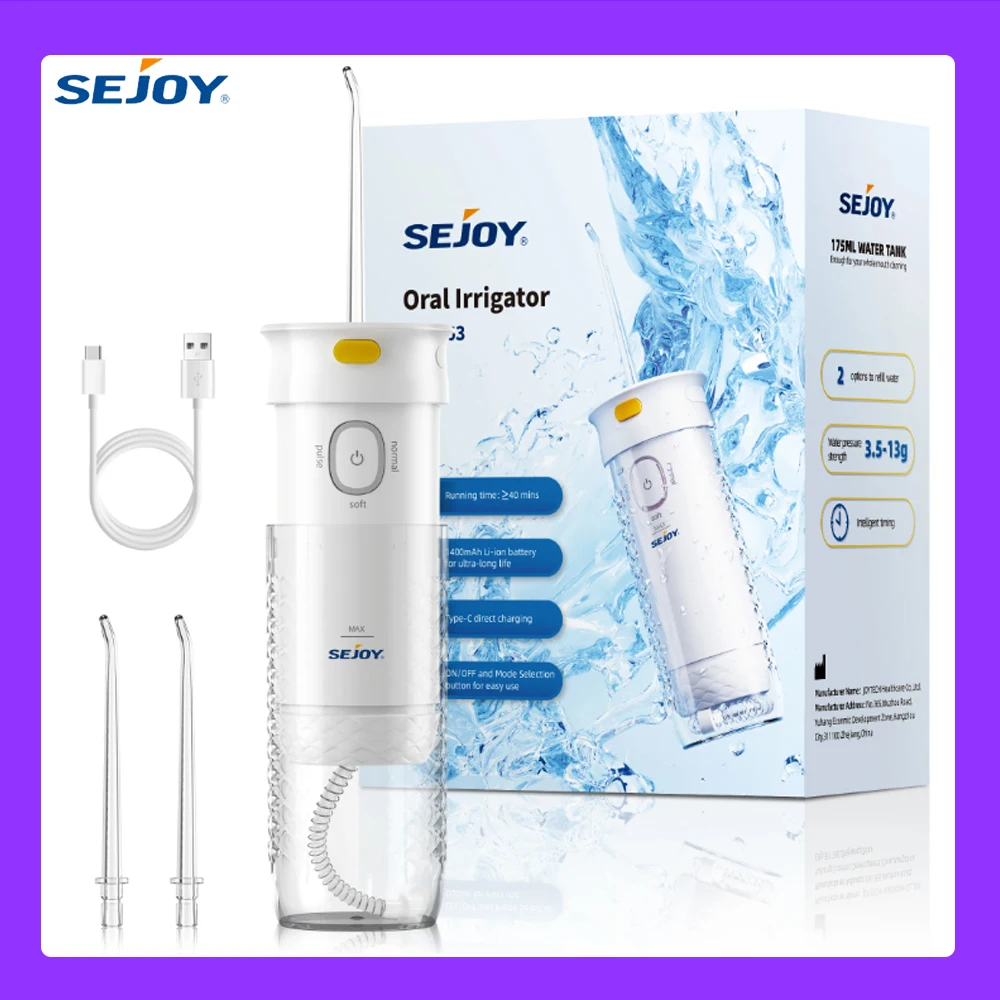 SEJOY Portable Teeth Cleaner Adult Mouth Washing Machine Water Flosser Oral Irrigator USB Rechargeable Water Jet 3 Modes IPX7