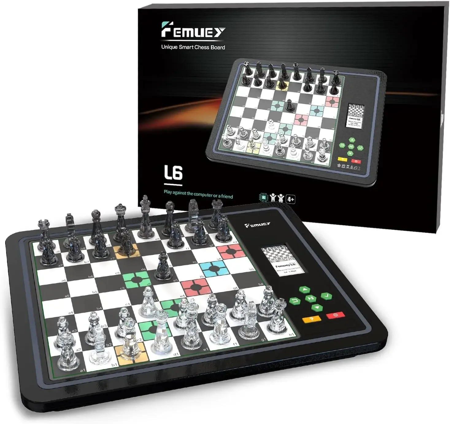 PORTABLE ELECTRONIC CHESS BOARD:Chess is best when you are challenged but still have a fair chance to win. It is most satisfying when you have a suitable opponent of similar strength or just above your level. This is exactly what L6 offers. It has a unique system to analyze your play during the game and it uses that information to challenge you at your own personal level. In addition, L6 plays in a very human way for your perfect playing experience.