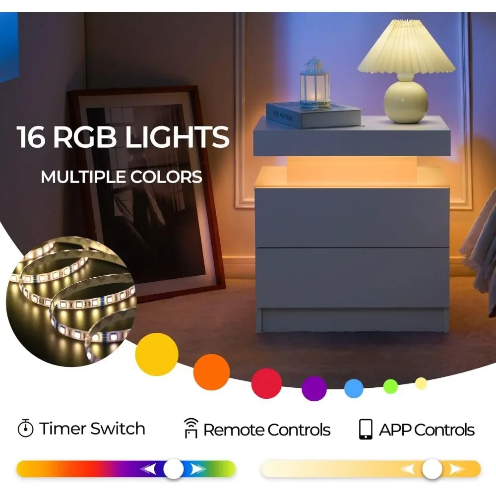 Home Store Home Decor Furniture Set of 2 LED Nightstand with 2 Drawers, Bedside Table with Drawers for Bedroom Furniture, Side Bed Table with LED
