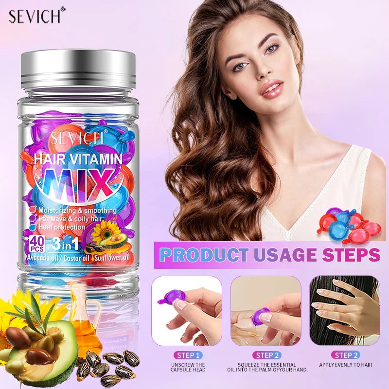 Sevich 40pcs Mix Hair Vitamin Capsules Fast Restore Hair Soft Smooth Shiny Deep Moisturizer Frizzy Dry Scalp Hair Care Products