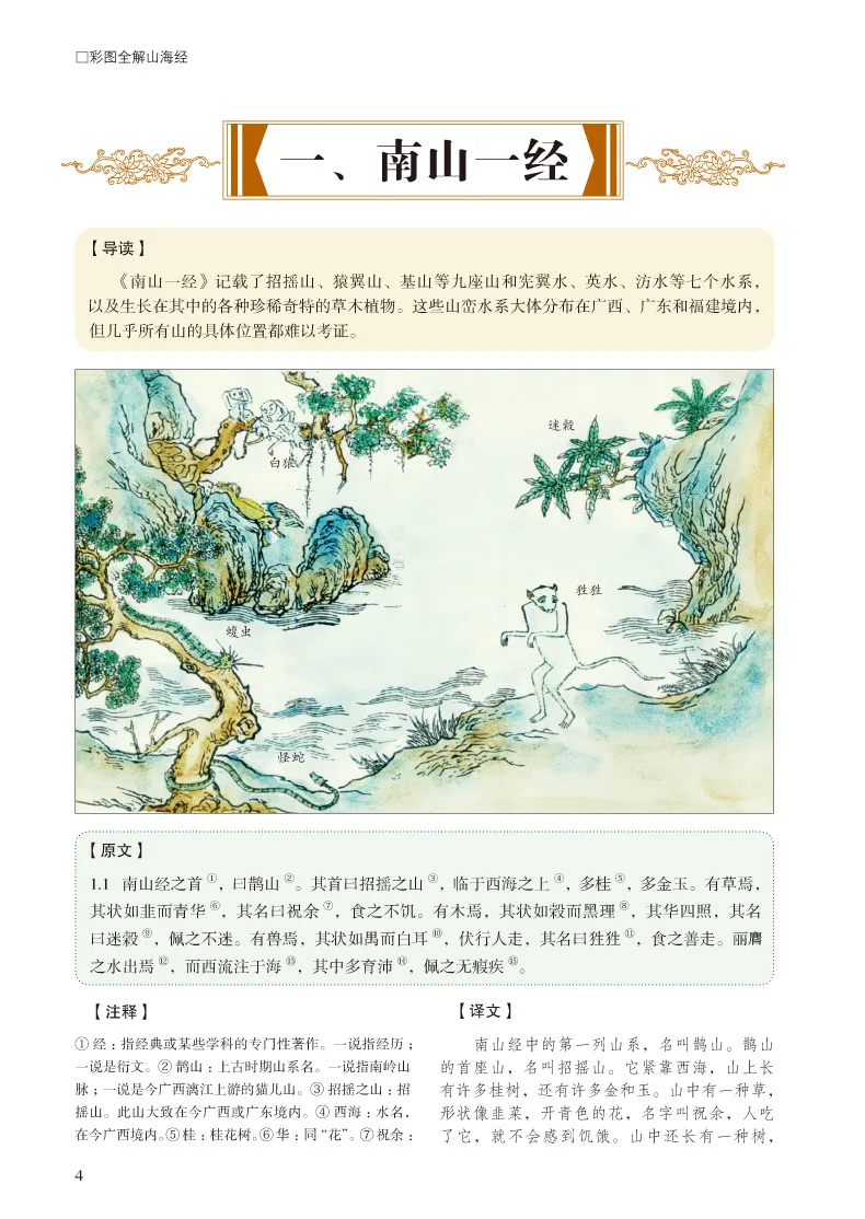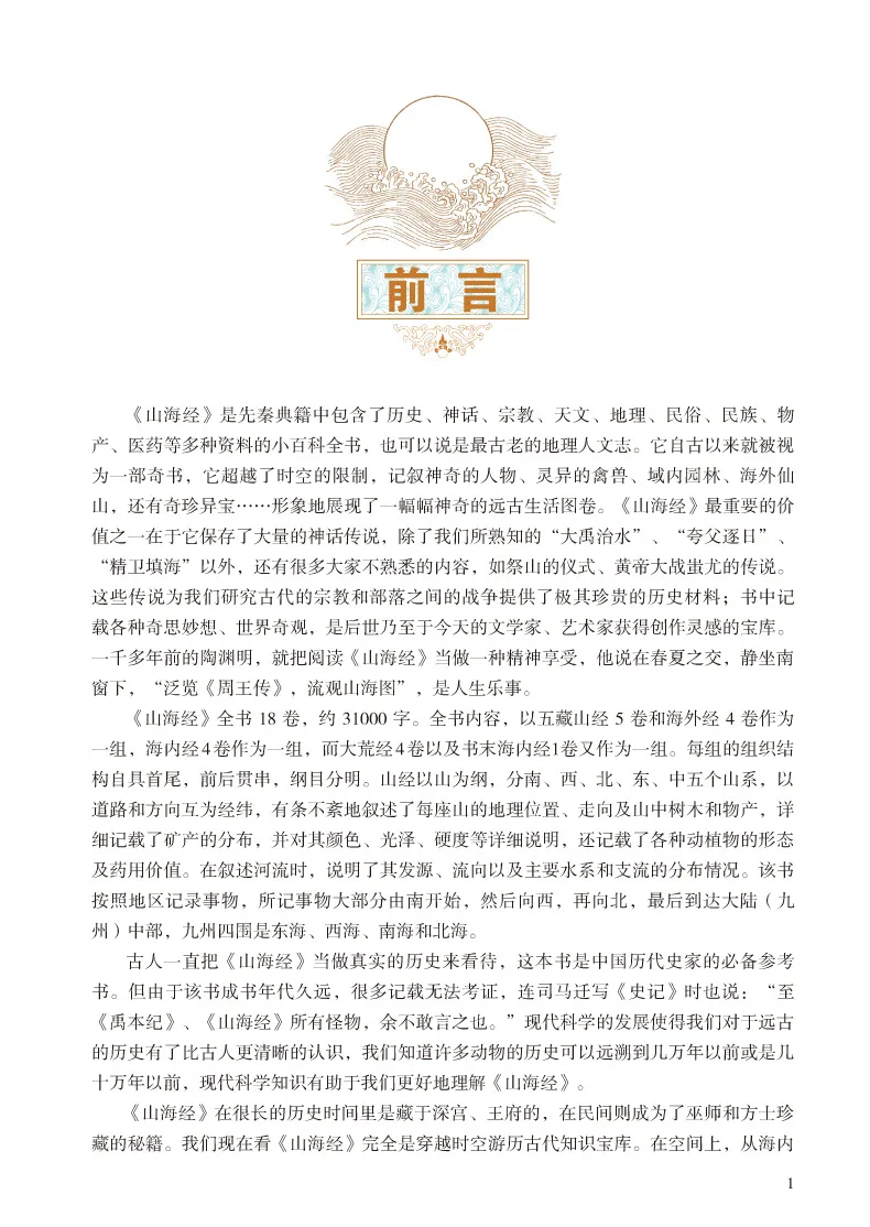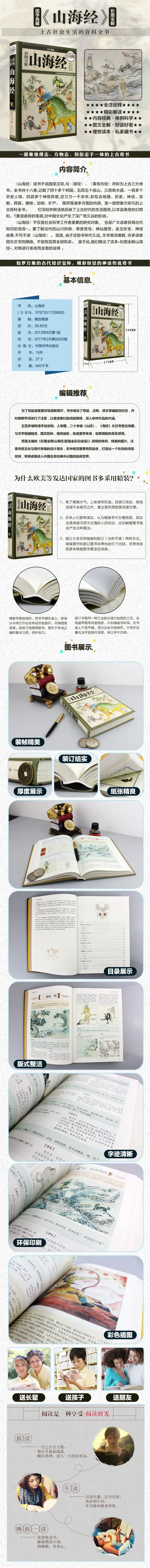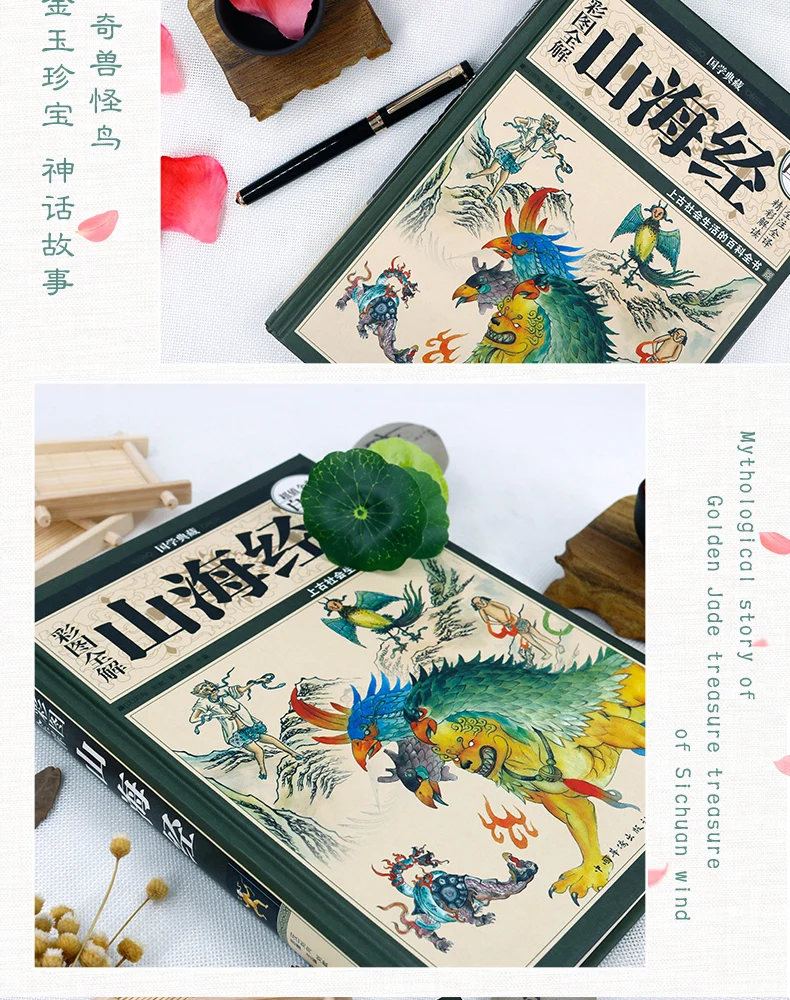 The “Shan Hai Jing” was written from the Warring States Period to the early Han Dynasty, and it is called the three ancient antiquity books together with “The Book of Changes” and “The Yellow Emperor’s Internal Classic”. The book has a total of 18 volumes, recording more than forty states, five hundred and fifty mountains, three hundred waterways, more than one hundred historical figures, more than four hundred monsters, only thirty-one words, But it contains geography, history, mythology, religion, ethnicity, plants, animals, minerals, medicine and many other aspects. It is an ancient encyclopedia with extraordinary imagination. It profoundly and vividly reflects the picture of life in the ancient times. With rich and bizarre fantasy and harmony, it has a profound and long-term influence on Chinese culture. “Shan Hai Jing” is not only an important research object for social science workers, but also a treasure trove of ancient knowledge for readers. To understand the ancient mountains and rivers, monsters and birds, fairy monsters, golden jade treasures, myths and stories, you must read the “Shan Hai Jing”. However, due to the age of the book, the text is difficult to understand, and many readers cannot fully appreciate its style due to the obstacles of the text. In view of this, we have launched this “Colorful Picture of the Mountain and Sea Classics” to systematically and comprehensively interpret it.