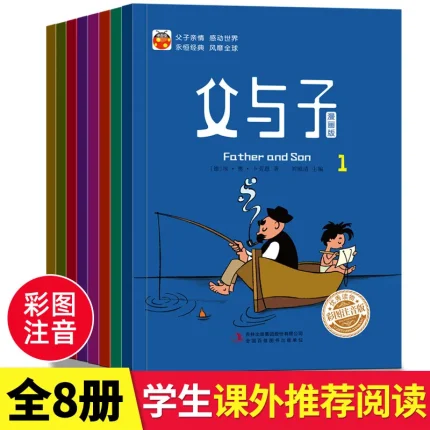 Father and Son Comic Edition, 8 Volumes, Color Phonetic Version of Extracurricular Reading Comic Books for Grades 1, 2, and 3
