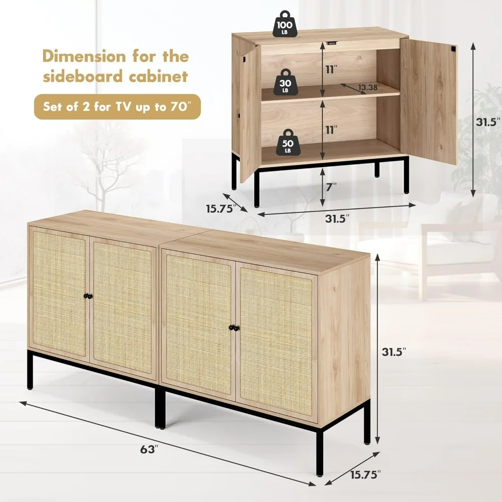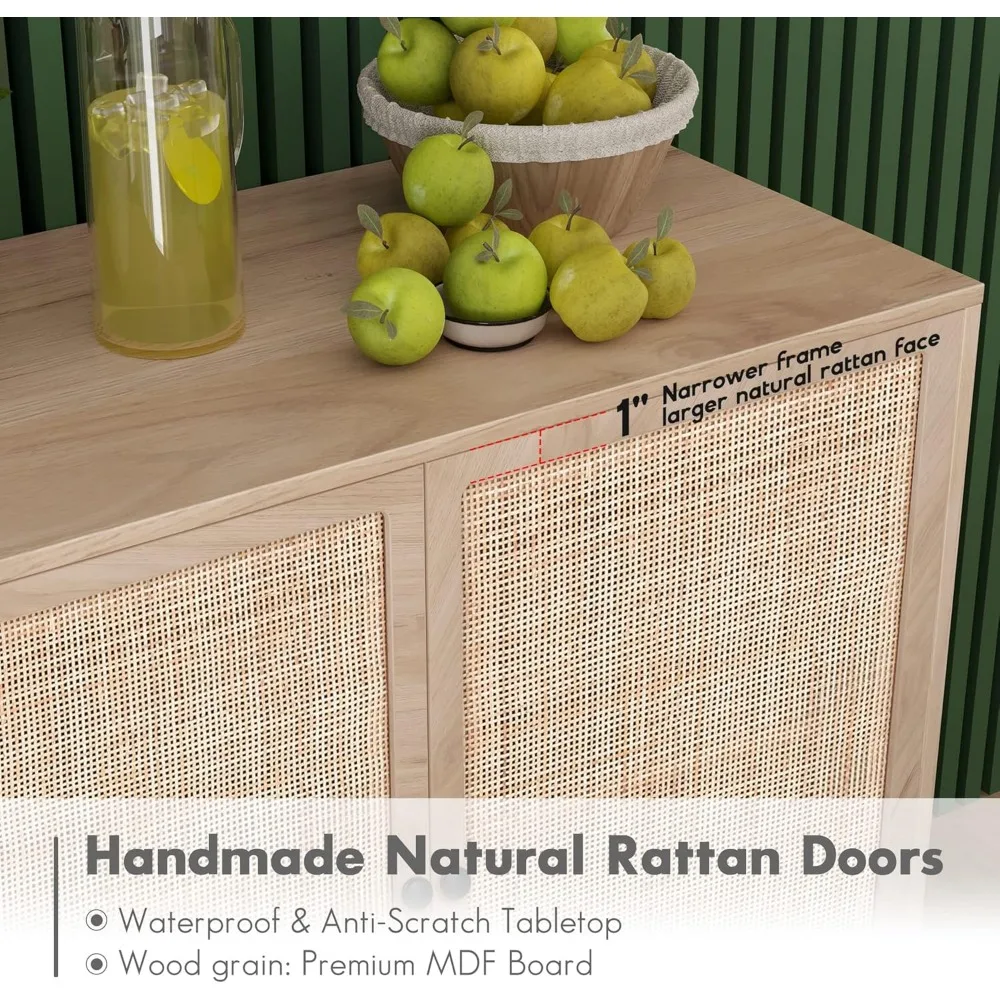 - 【LARGE STORAGE SPACE】: The buffet table(credenza) with handmade rattan decorated doors features a spacious top and two large space insides, beautiful and practical. Great to place your collections or decorations or necessities, make your room tidy and orderly. It is perfect for your living room bedroom dining room entryway kitchen hallway.