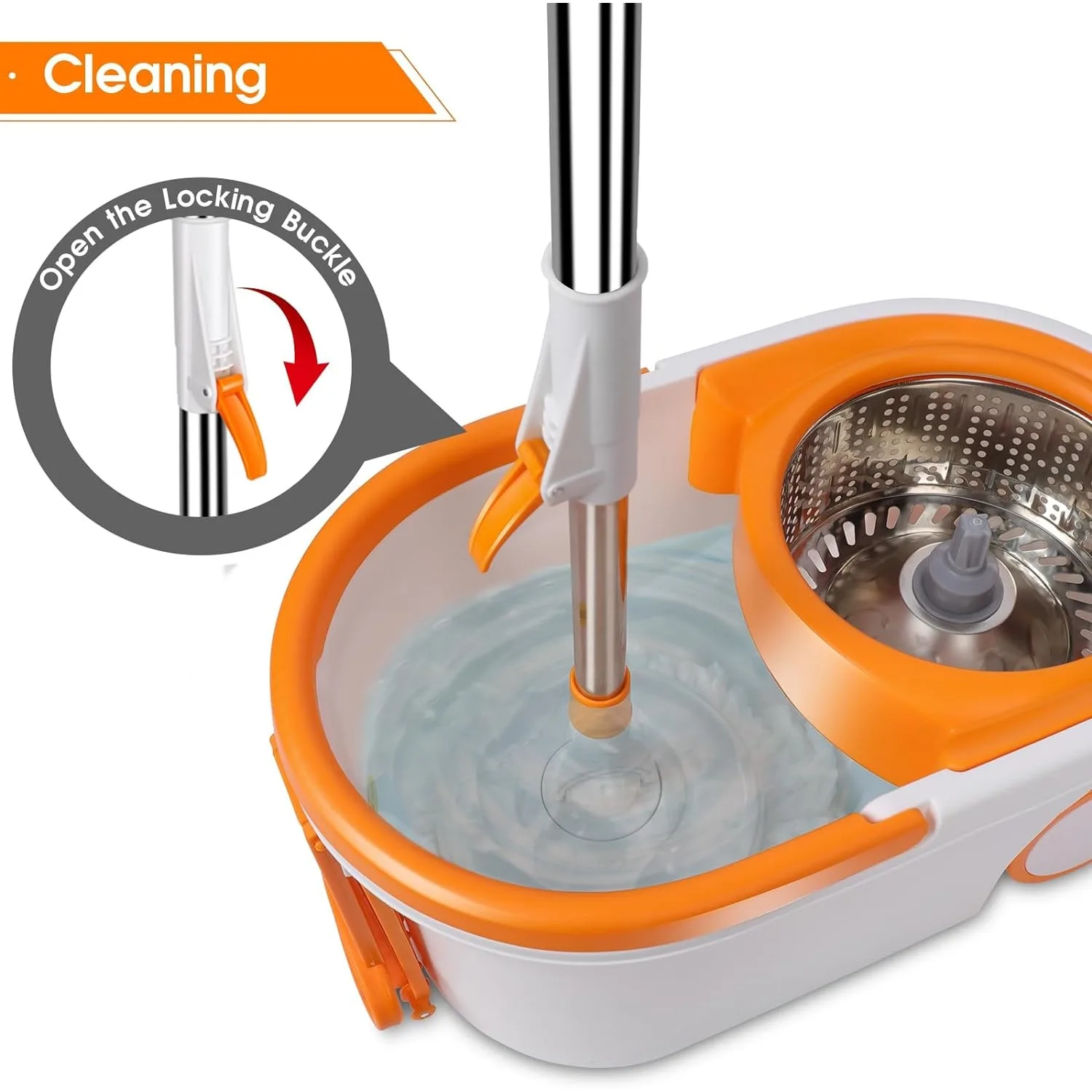 • Professional Details: The spin mop bucket allows you to spin off excess water, dry the mop quickly, which save time and effort. The built-in wringing basket has splash guard features, keep the water inside the bucket. With the 203 oz large capacity, reduce times of adding water.