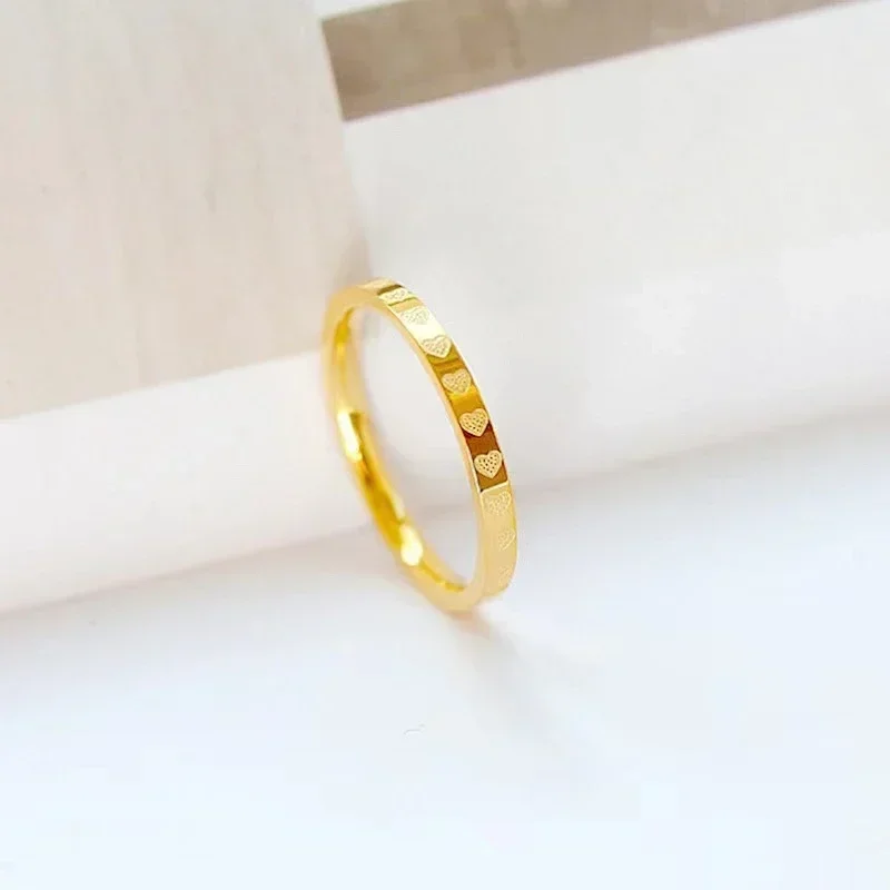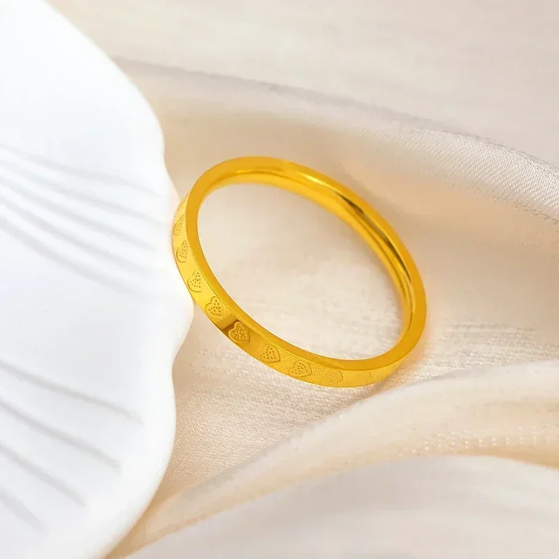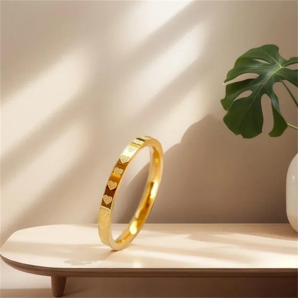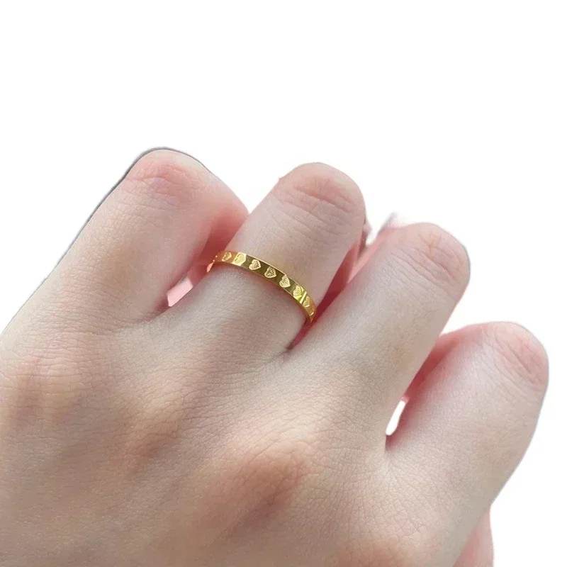 Stainless Steel Gold Color Multi Hearts 2.5mm Thin Finger Rings for Women Size 6/7/8/9/10# Wedding Engagement Jewelry Gifts