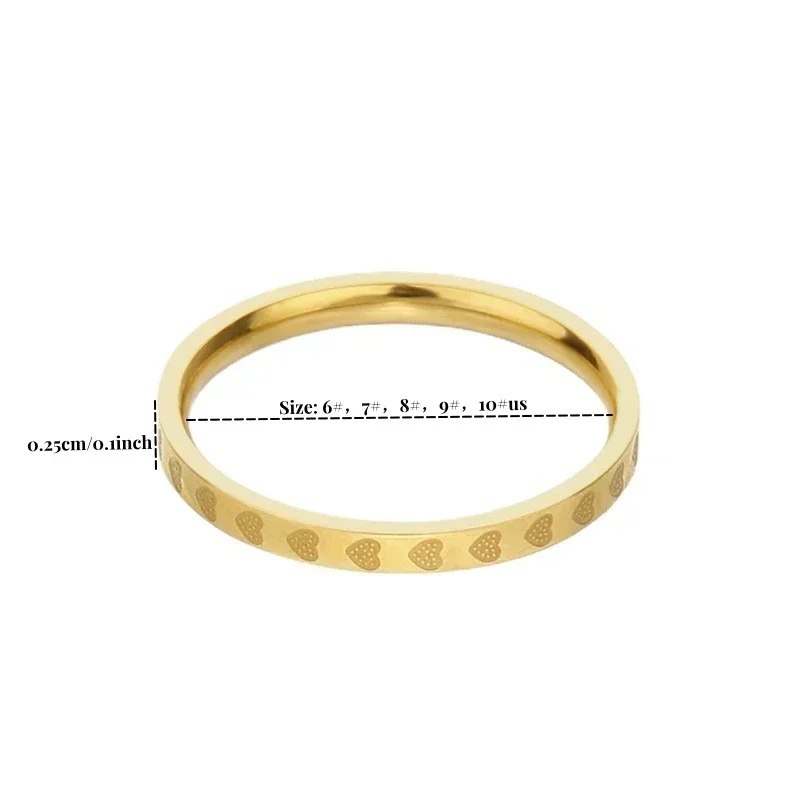 Home Store Fashion & Accessories Jewelry Stainless Steel Gold Color Multi Hearts 2.5mm Thin Finger Rings for Women Size 6/7/8/9/10# Wedding Engagement Jewelry Gifts