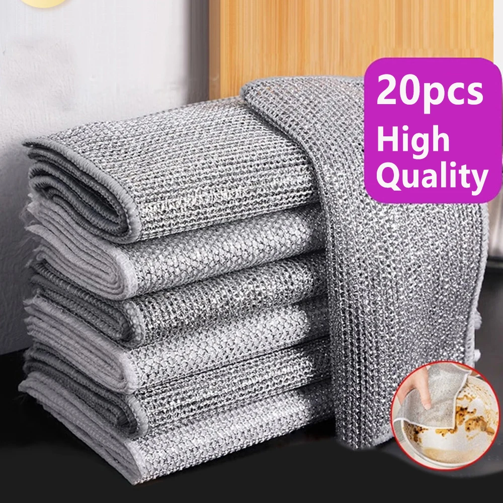 Home Store Household Essentials Cleaning supplies Steel Wire Mesh Magic Cleaning Cloth Double -sided Non-Scratch Non-stick Metal Rags For Kitchen Dishwashing Towel Cleaning Tools