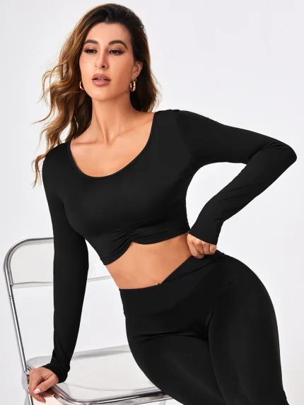 Long Sleeve Solidcolor Yoga Pilates Shirts for Women Quick Dry Elastic Slim Fit Crop Top Running Workout Breathable Sportswear $18.19 – $19.03