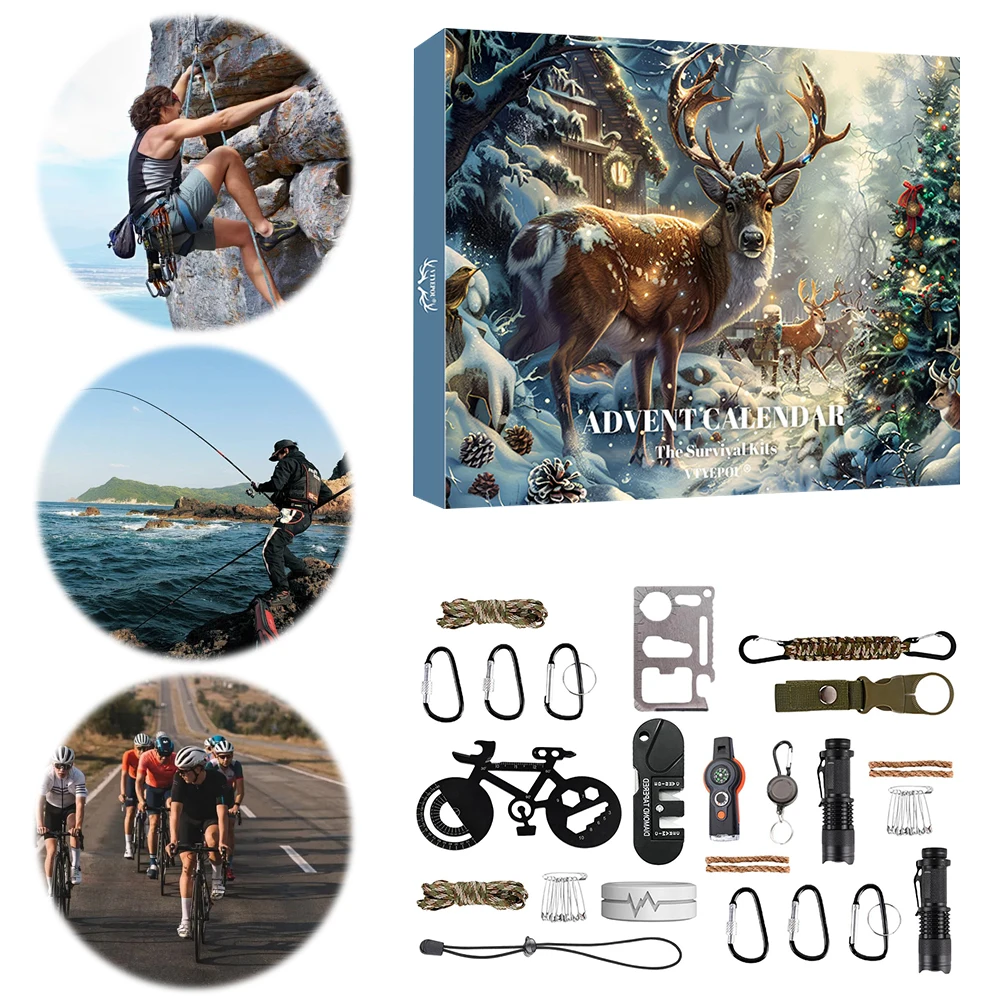 3.Reliable Outdoor Support: Offering reassurance during activities like hiking, camping, hunting, fishing, and traveling, this Christmas advent calendar equips you for unexpected challenges, making it a versatile companion for any adventure.