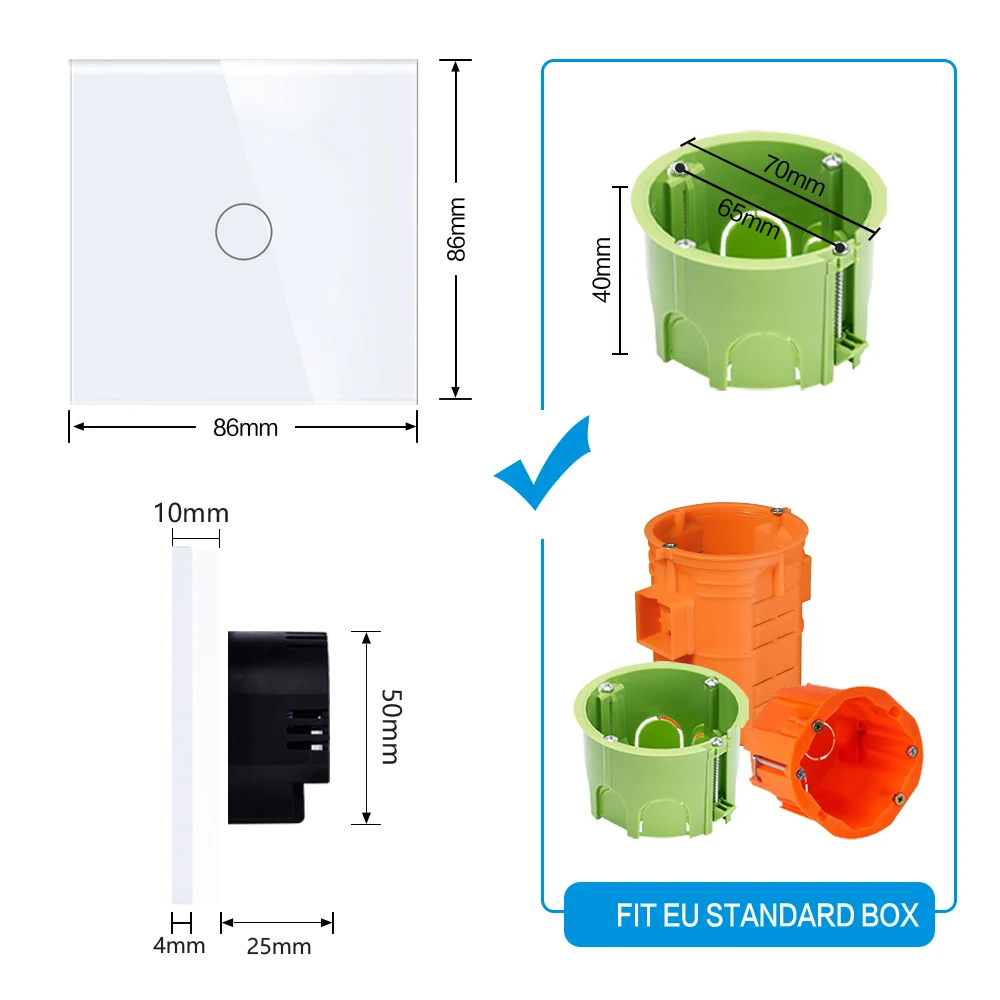 - Material: Tempered glass panel & Anti-rust Iron Plate & Flame Retardant PC Switch Module & Copper Screws