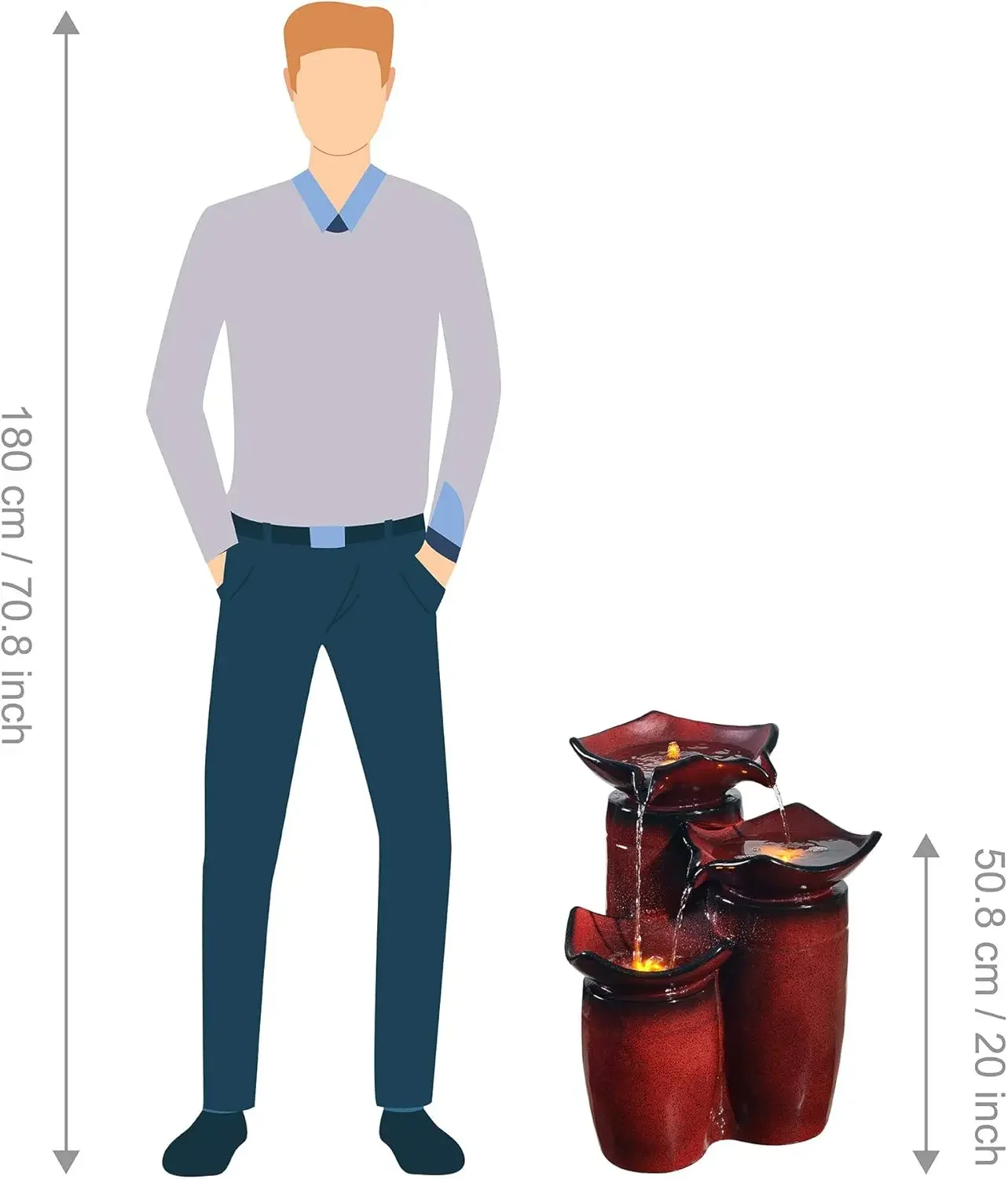 - GARDEN DÉCOR: Features a multi-tiered red glazed pot design with a stunning gradient finish for a tranquil and soothing addition to your porch, backyard, or lawn