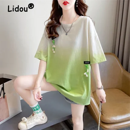 Women's Clothing Tie Dye Gradient Print Harajuku Streetwear Oversized Y2K T-shirts Summer Trendy Short Sleeve Simple Tunic Tops $38.94