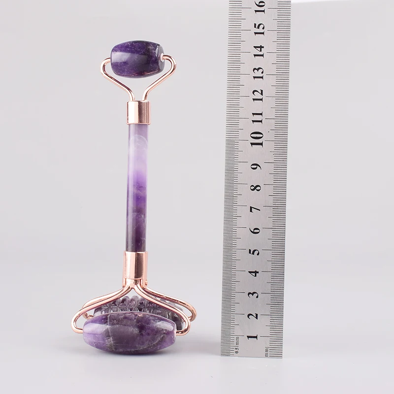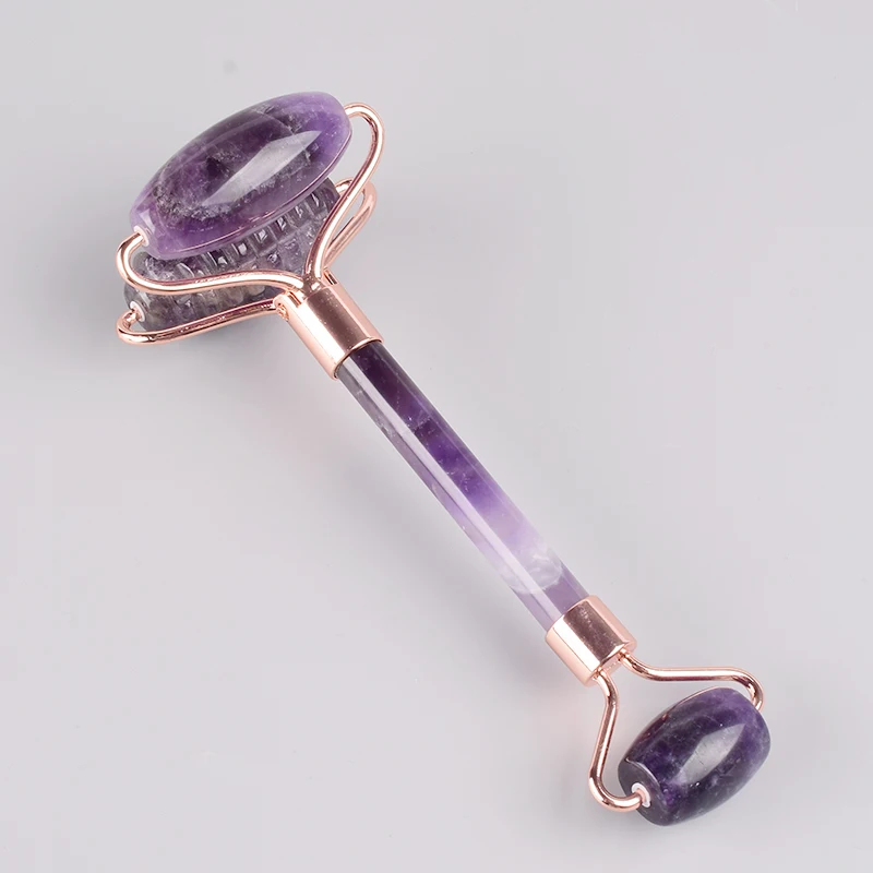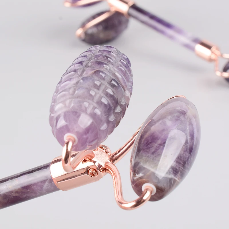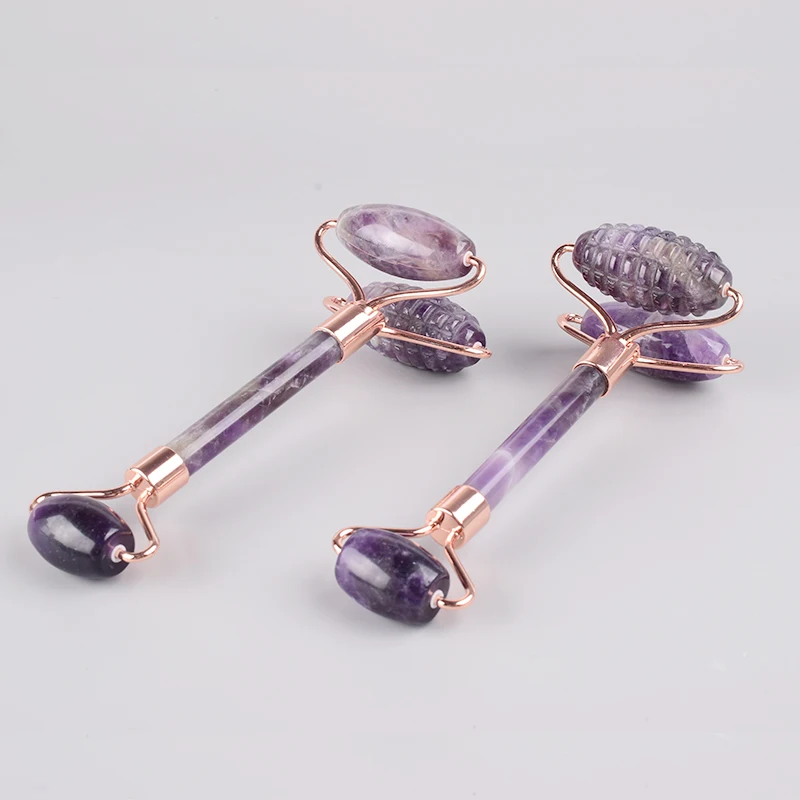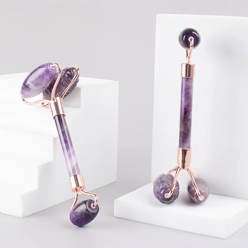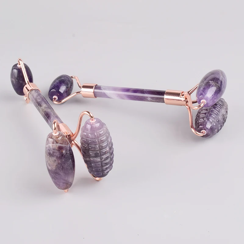 The New Sawtooth Double Big Roller Face Massage Tool Natural Amethyst Body Eye Neck Healing Stone Health Care Beauty Massager