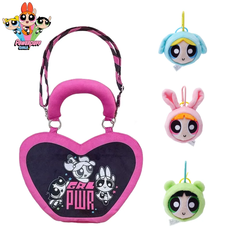 Home Seasonal and Holiday The Powerpuff Girls Season 1 Crossbody Bag Girls Heart-shaped Shoulder Bag Travel Backpack Plush Key Pendant Dolls Holiday Gift