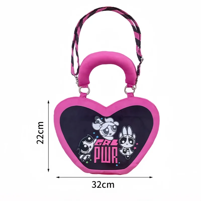 The Powerpuff Girls Season 1 Crossbody Bag Girls Heart-shaped Shoulder Bag Travel Backpack Plush Key Pendant Dolls Holiday Gift