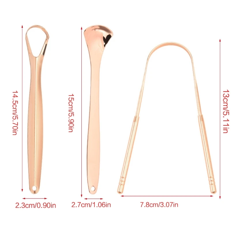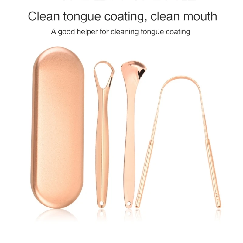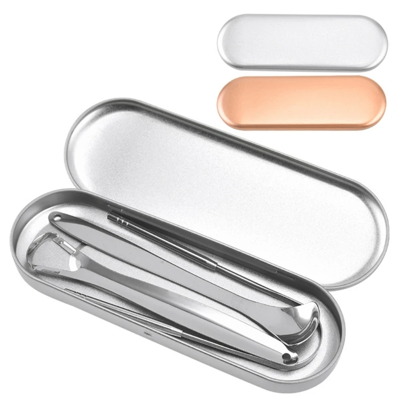 Metal tongue scrapper set,come with 3pcs tongue cleaners scrapers,1pc u shaped,1pc hollow scraper,1pc spoon scraper.different shaped and-sizes meet your diversified needs, suitable for adults and kids. well packed in a carrying box for storage, keep it clean and dust-proof.