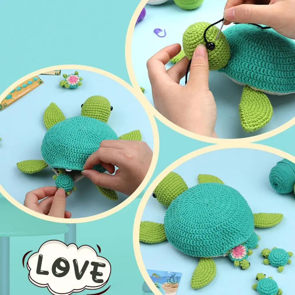 2.Crochet Kit: This turtle crochet kit has everything you need to make multiple little turtles that can fit inside a big turtle’s belly, providing endless entertainment for children and adults, and offering a fun and creative experience