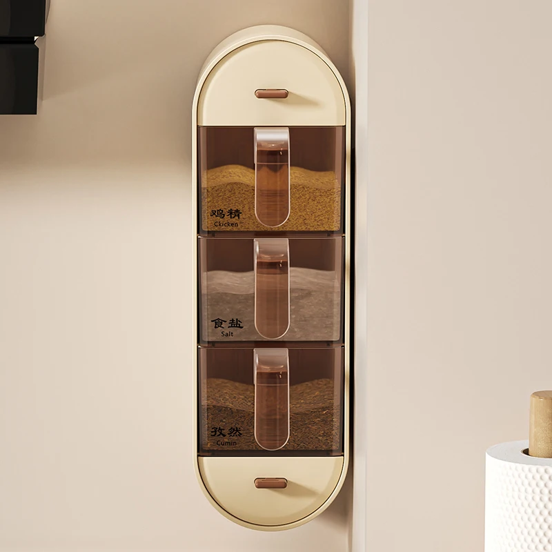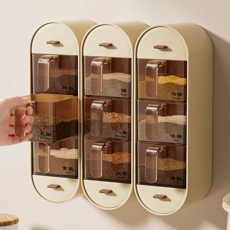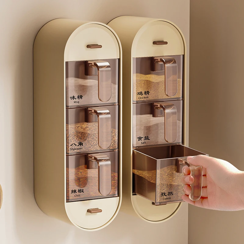 UFORU Household kitchen Items Salt monosodium glutamate combination Set Wall hanging non-punching plastic flavoring box