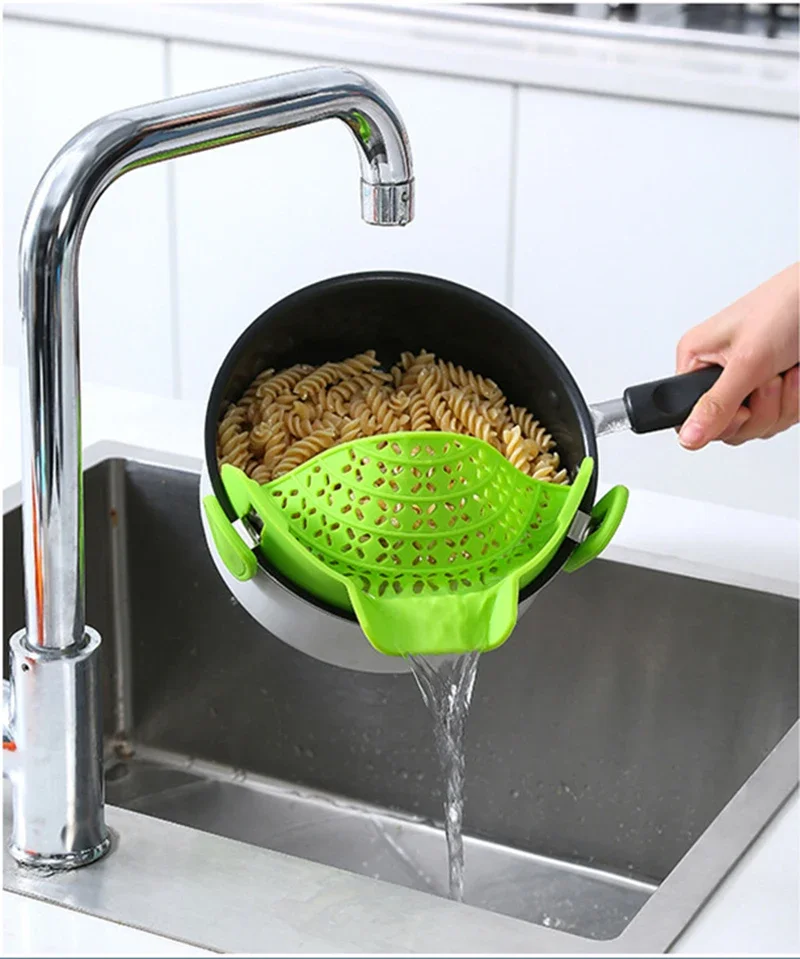 Universal Silicone Clip-on Pan Pot Strainer Anti-spill Pasta Pot Strainer Food Grade Rice Fruit Colander Strainer Kitchen Items