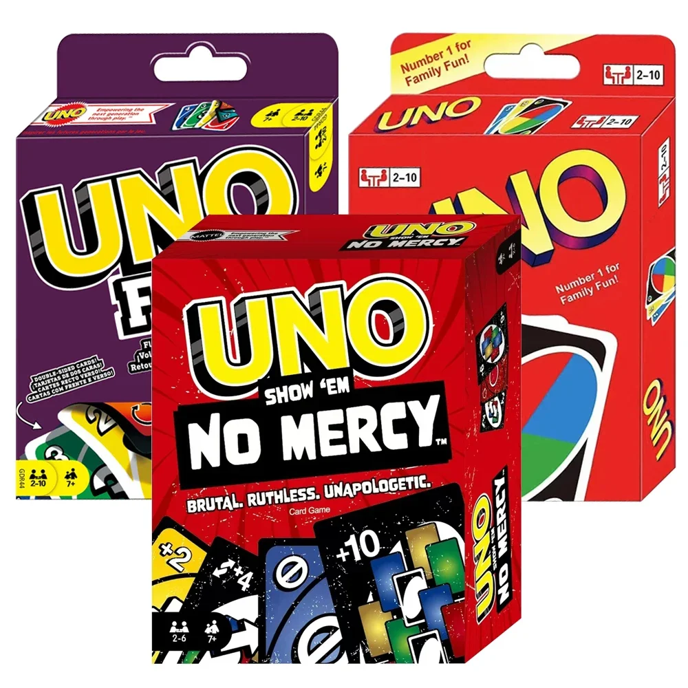 UNO FLIP! SHOWEM NO MERCY WILD! DOS DARE! Family Funny Entertainment Board Game Fun Playing Cards Box Card Game Christmas Gifts