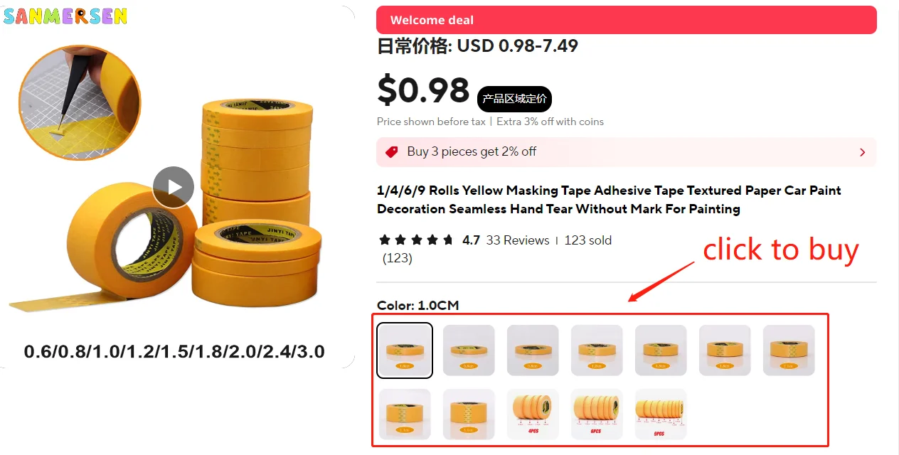 1/4/6/9 Rolls Precision Model Masking Tape Fine Line DIY Cover Tape for Model Hobby Tool Set Width 6/8/10/12/15/18/20/24/30mm