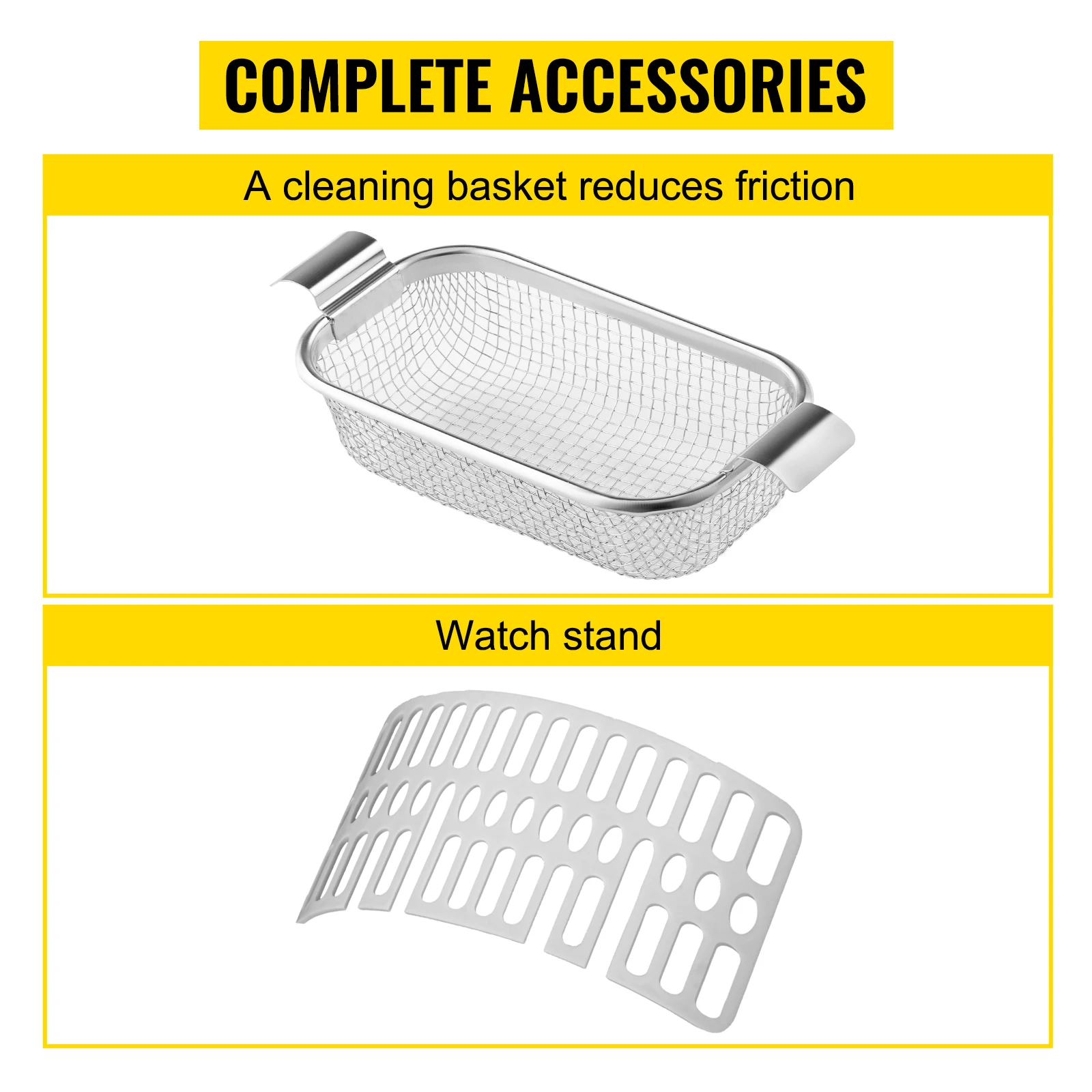 User-friendly Design: Tabletop ultrasonic washer, light-weight and easy to carry/move. It is designed for better customer use: washing basket, safe socket, heat dissipation, anti-slide rubber feet, and top lid with handle.