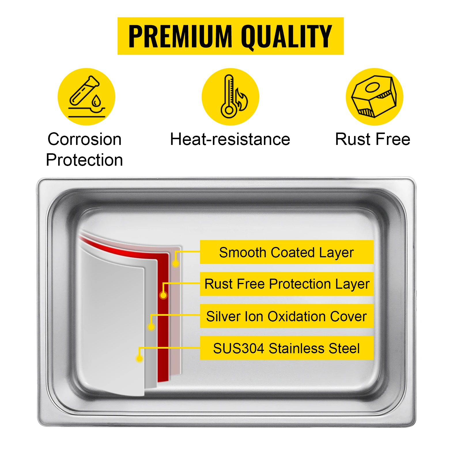 Premium Quality: Made of high quality 304 stainless steel. Anti-rust to different kinds of solutions, corrosion-resistant and no water seepage.