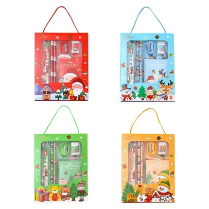 Christmas Stationery Set Kids Cartoon Pencils Eraser Ruler Memo Pads Pencil Knife Set School Supplies Back To School Gift $8.77 – $18.01