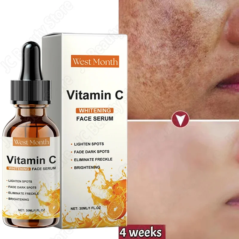 Vitamin C Whitening Serum Remove Freckles Dark Spots Face Essence Fade Melasma Melanin Brighten Repair Dull Skin Care Cosmetics