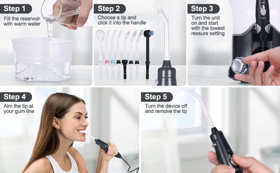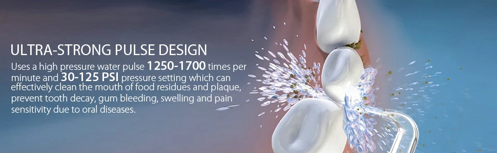 The powerful water pulse has 10 adjustable water pressure settings, which can be selected to match how your gums feel on any day.