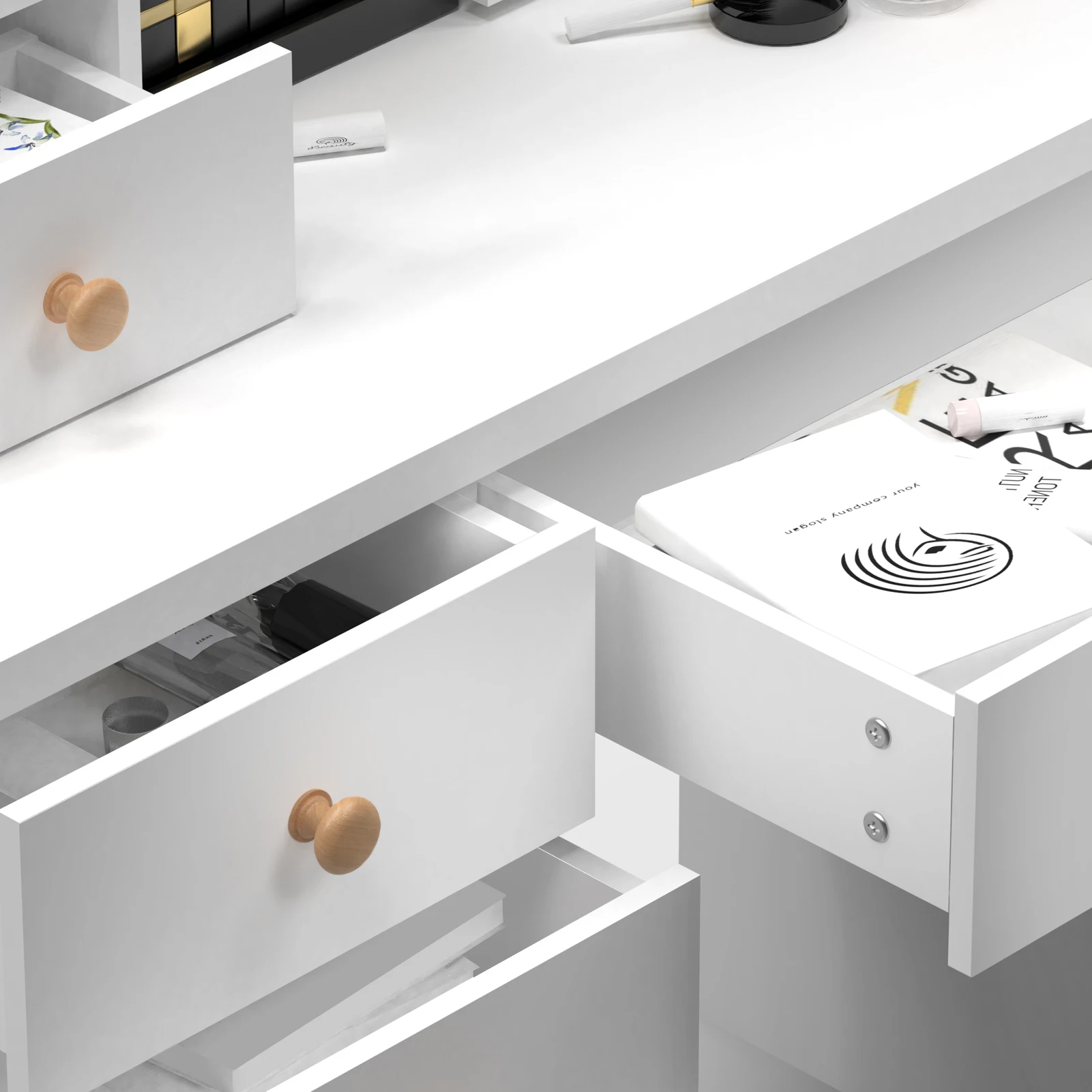Home Store Home Decor Furniture White Vanity Set With Sliding Mirror Bedroom Furniture Home Makeup Vanity Table Girls Furnitures With 6 Drawers Storage Space