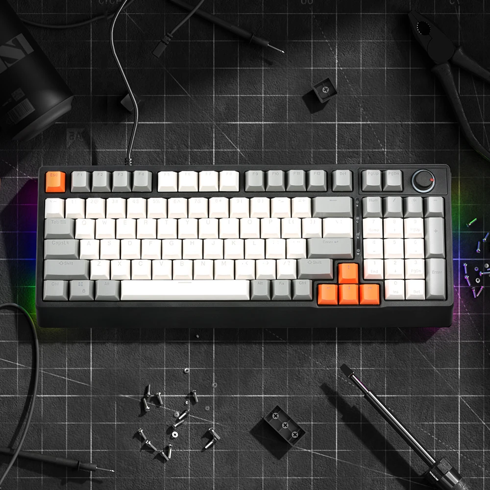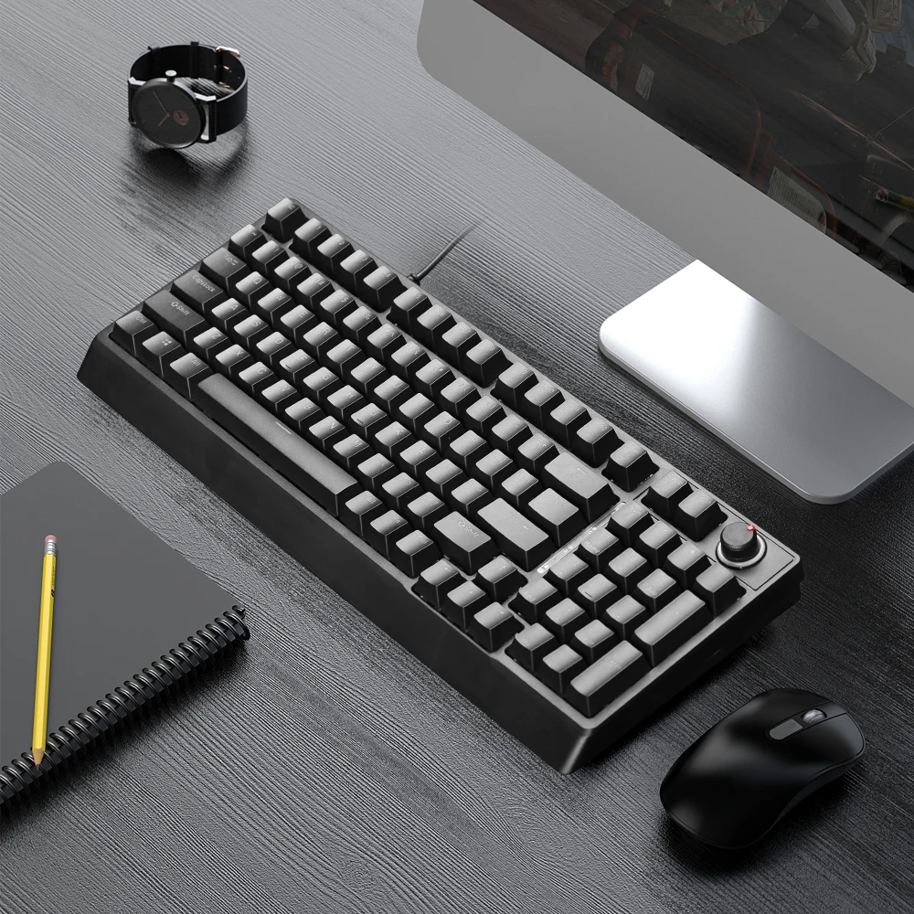 3. 98-key layout, keyboard and power cord integrated design, plug and play.