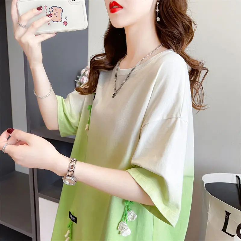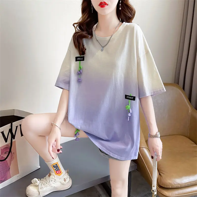 Women’s Clothing Tie Dye Gradient Print Harajuku Streetwear Oversized Y2K T-shirts Summer Trendy Short Sleeve Simple Tunic Tops