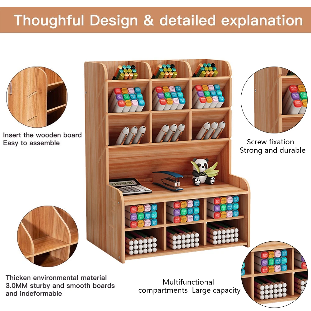 Wooden Desk Organizer Pen Holder Storage Box Wooden Stationery Storage Case DIY Pen Holder Organizer Desk Tidy Pen Holder