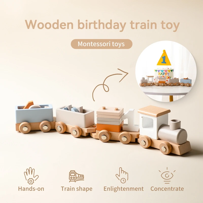 Wooden Train Birthday Toy Montessori Toys Baby Educational Toys Wooden Trolley Baby Learning Toys Number Of Wood Baby’s Toys