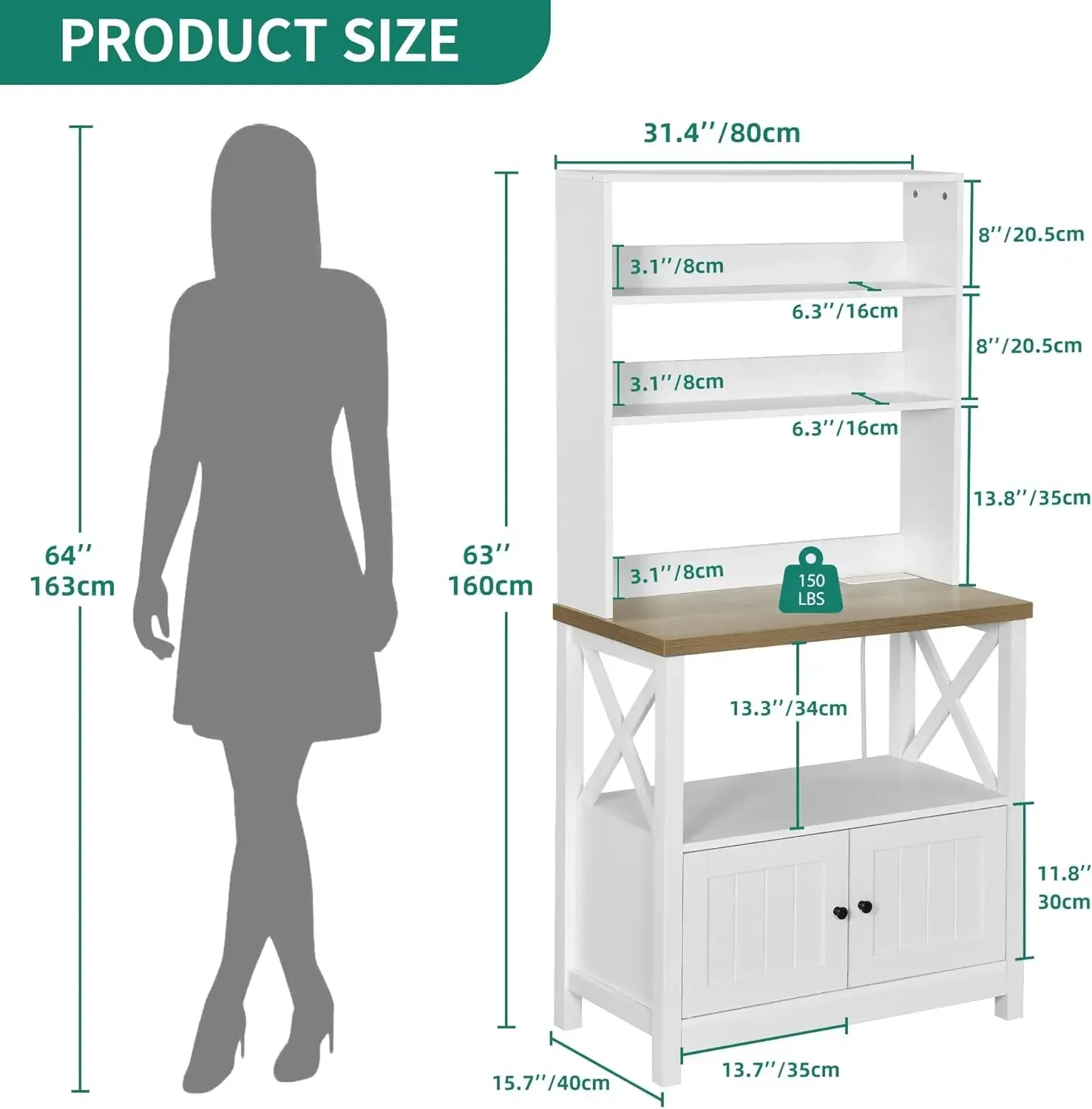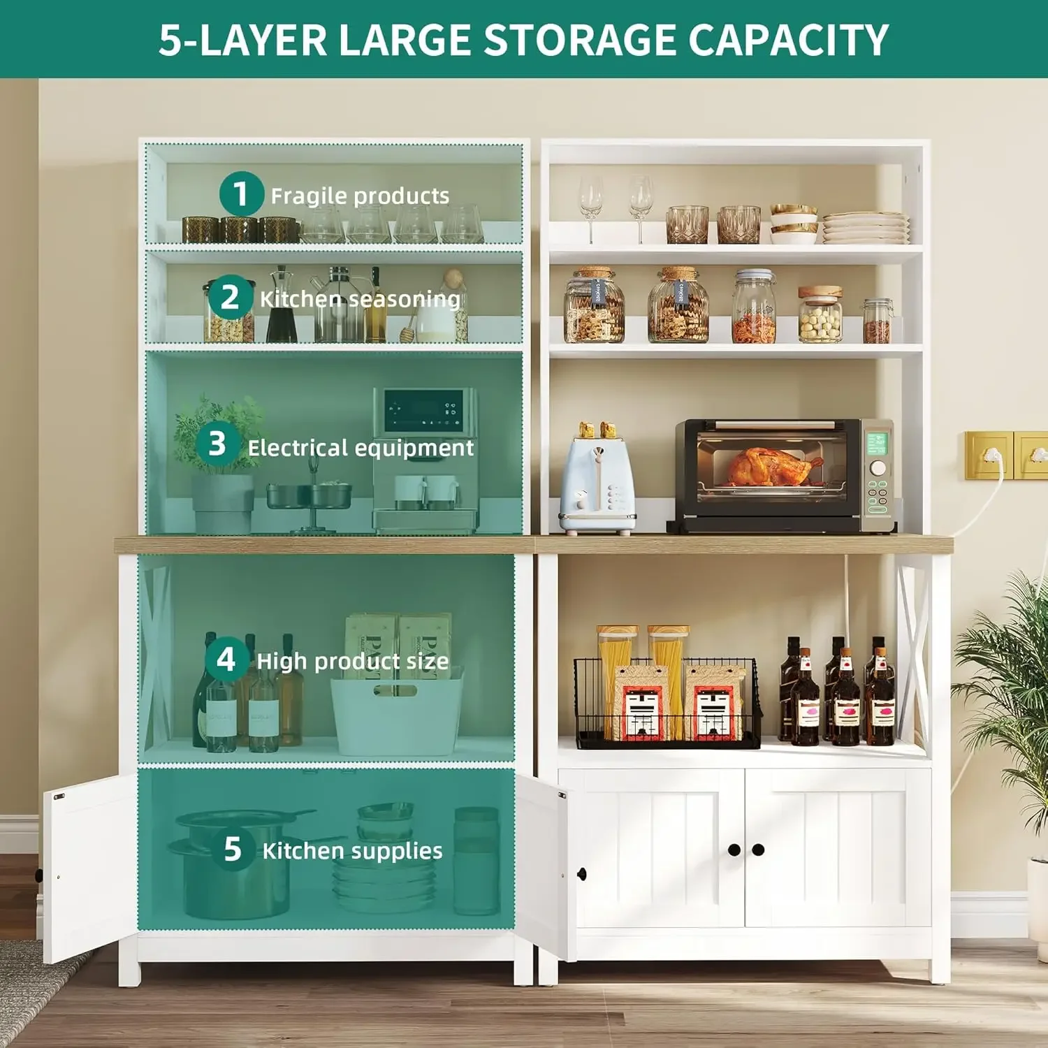 | Recommended Uses For Product | Pantry, Bakers Rack, Microwave Oven, Kitchen Storage Cabinet, Coffee Bar |
