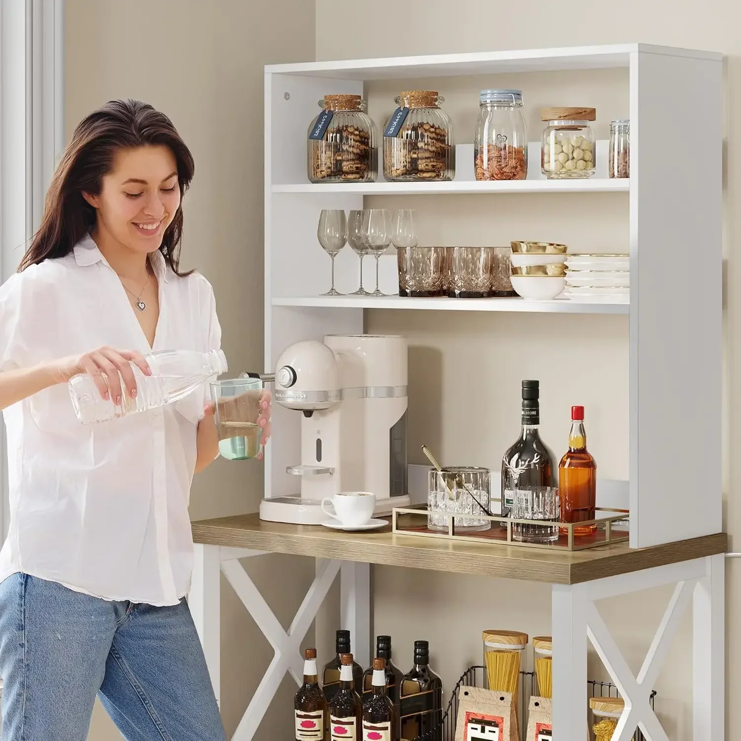 - Convenient Charging Station: Keep your kitchen appliances charged and ready with built-in power outlets and USB ports of this kitchen bakers rack. No need to relocate them for charging
