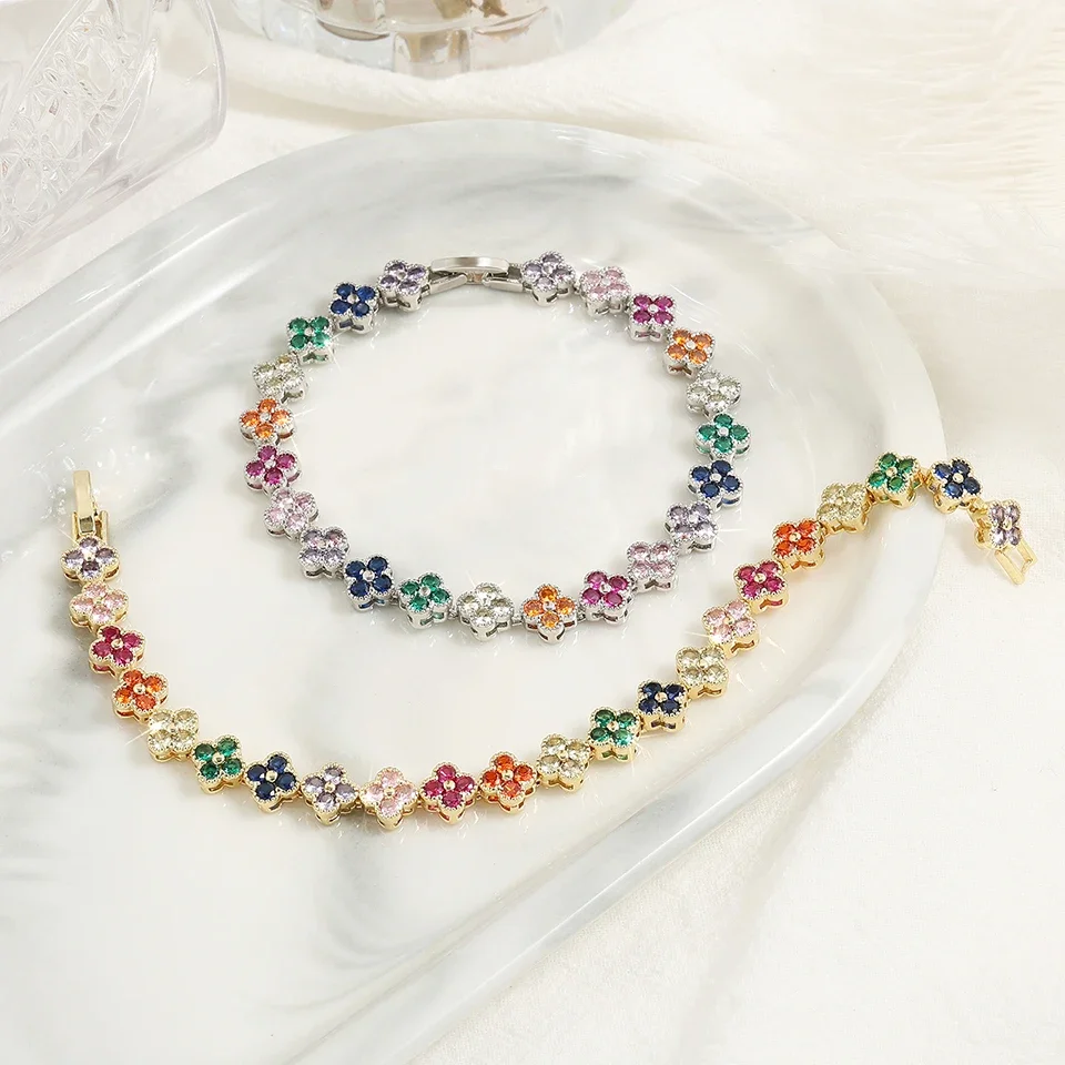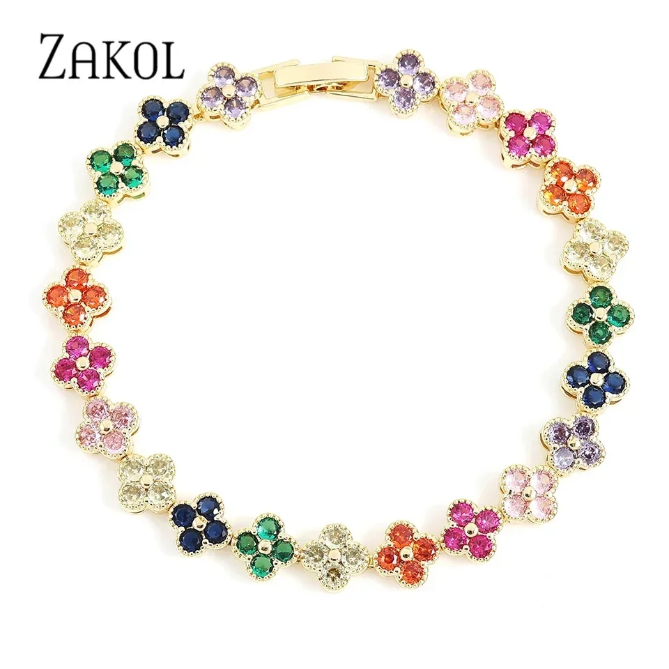 Home Store Fashion & Accessories Jewelry ZAKOL Korean Fashion Random Colorful Zircon Flower Plant Bracelets For Women Dopamine Girls Jewelry Party Accessories